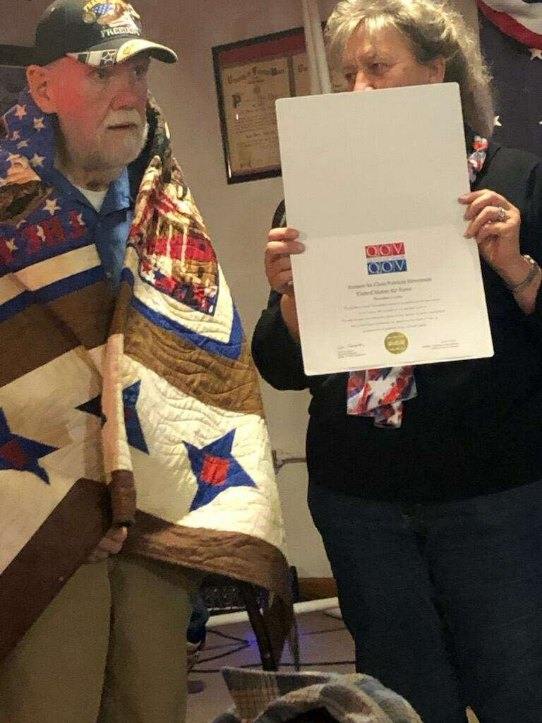 The Ordway VFW hosted the Colorado Prairie Quilters Chapter of the Quilts of Valor to honor local veterans Patricia Leard, John LeBrec, and Patricia Stevenson for their service.