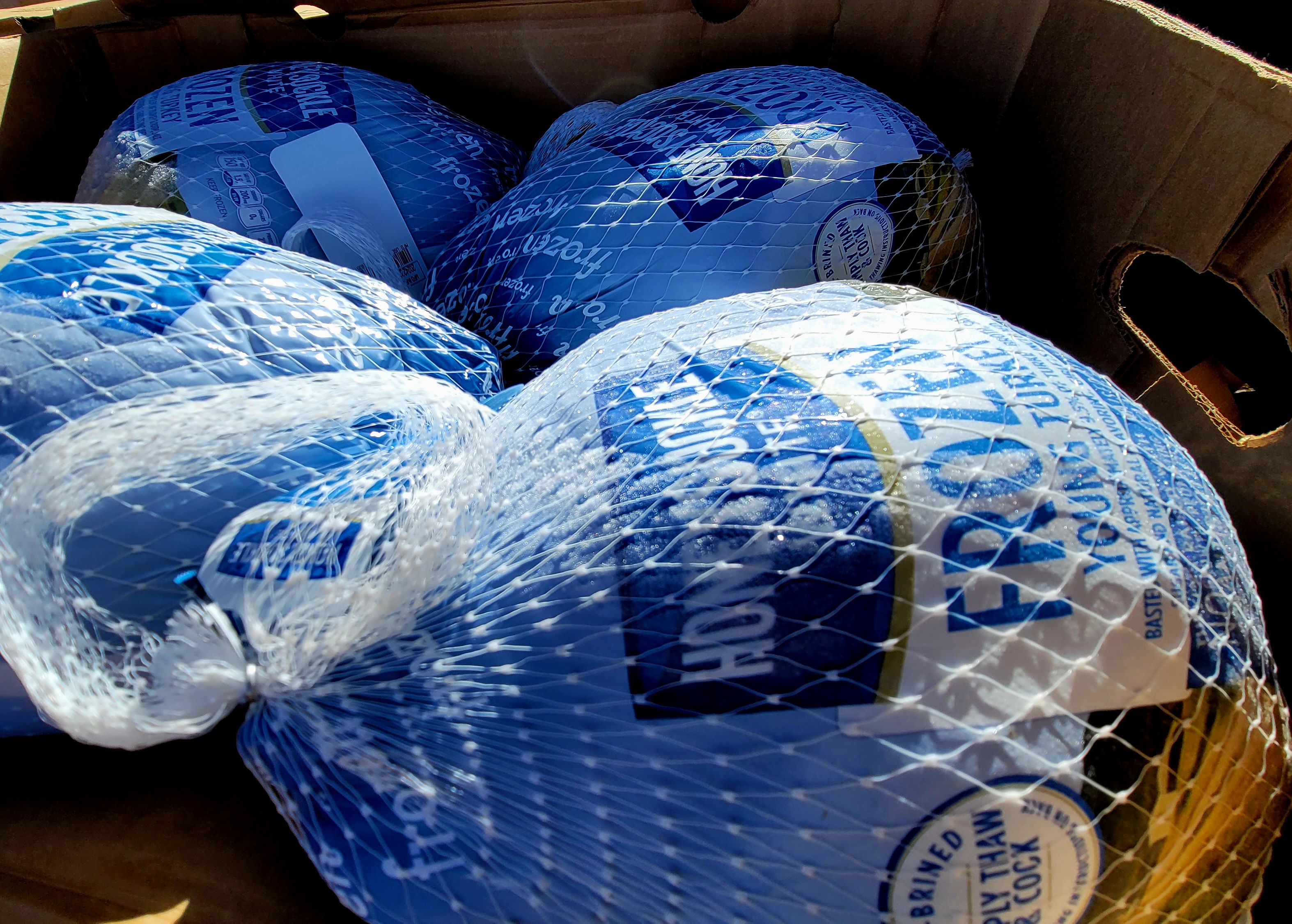 Thanksgiving Meal recipients from across the valley drove through the Arkansas Valley Fairgrounds to pick up their turkeys, potatoes and all the sides.