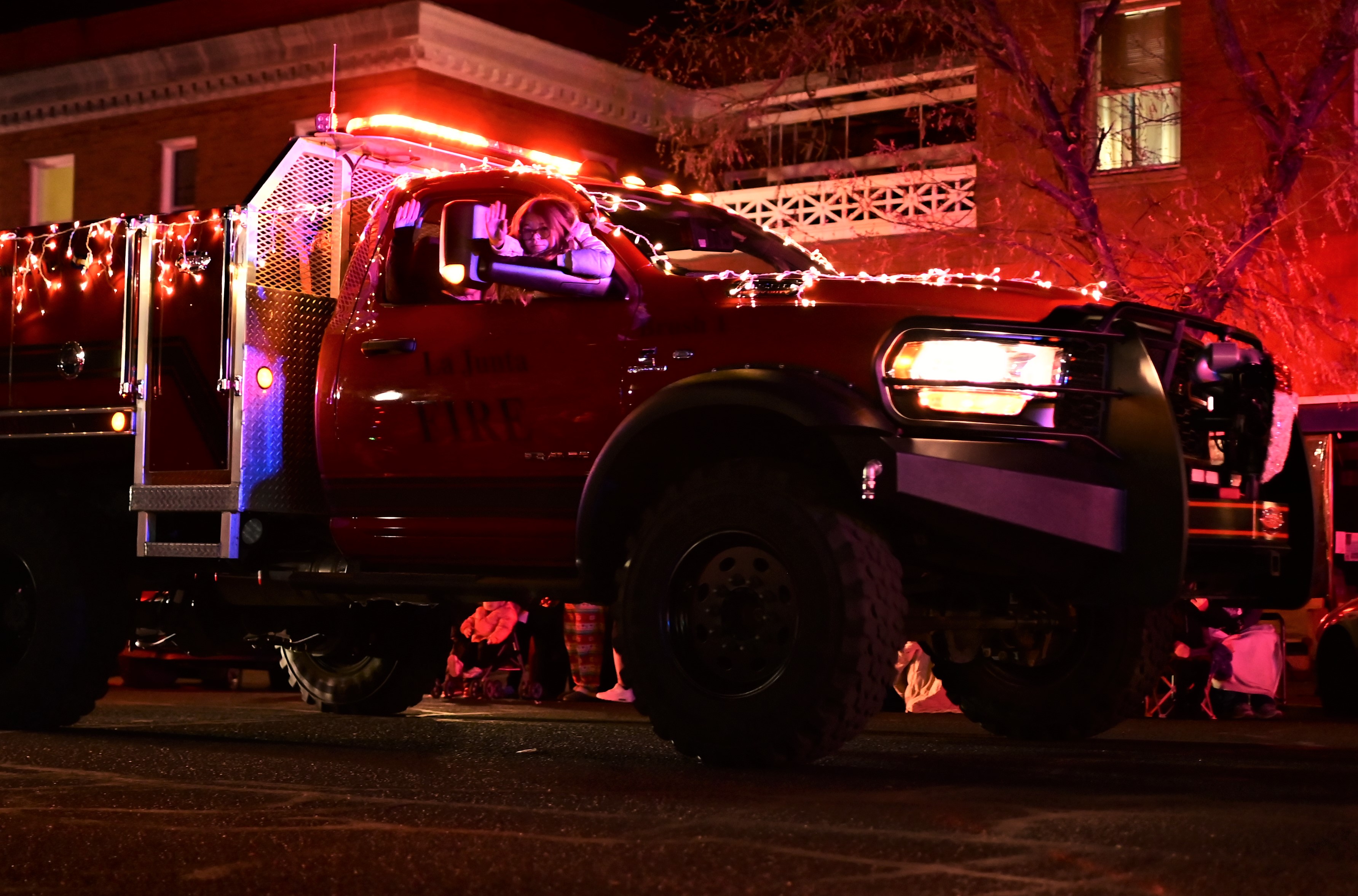 The La Junta Fire Department's Brush Fire Response Truck was Lit Up in Red for the Parade. (Photo by Kaitlyn Myers)