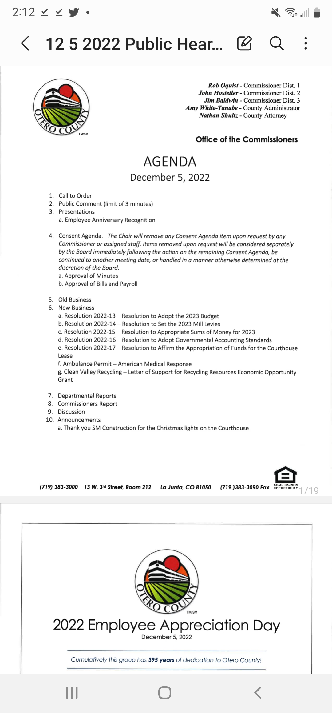 Description: Otero County Employees were presented service awards at the Otero County Commissioners Meeting on Monday.