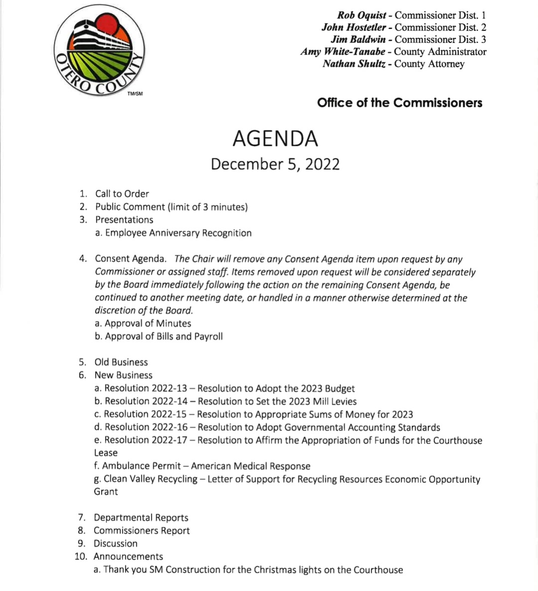 Otero County Commissioners December 5, 2022 Meeting Agenda: