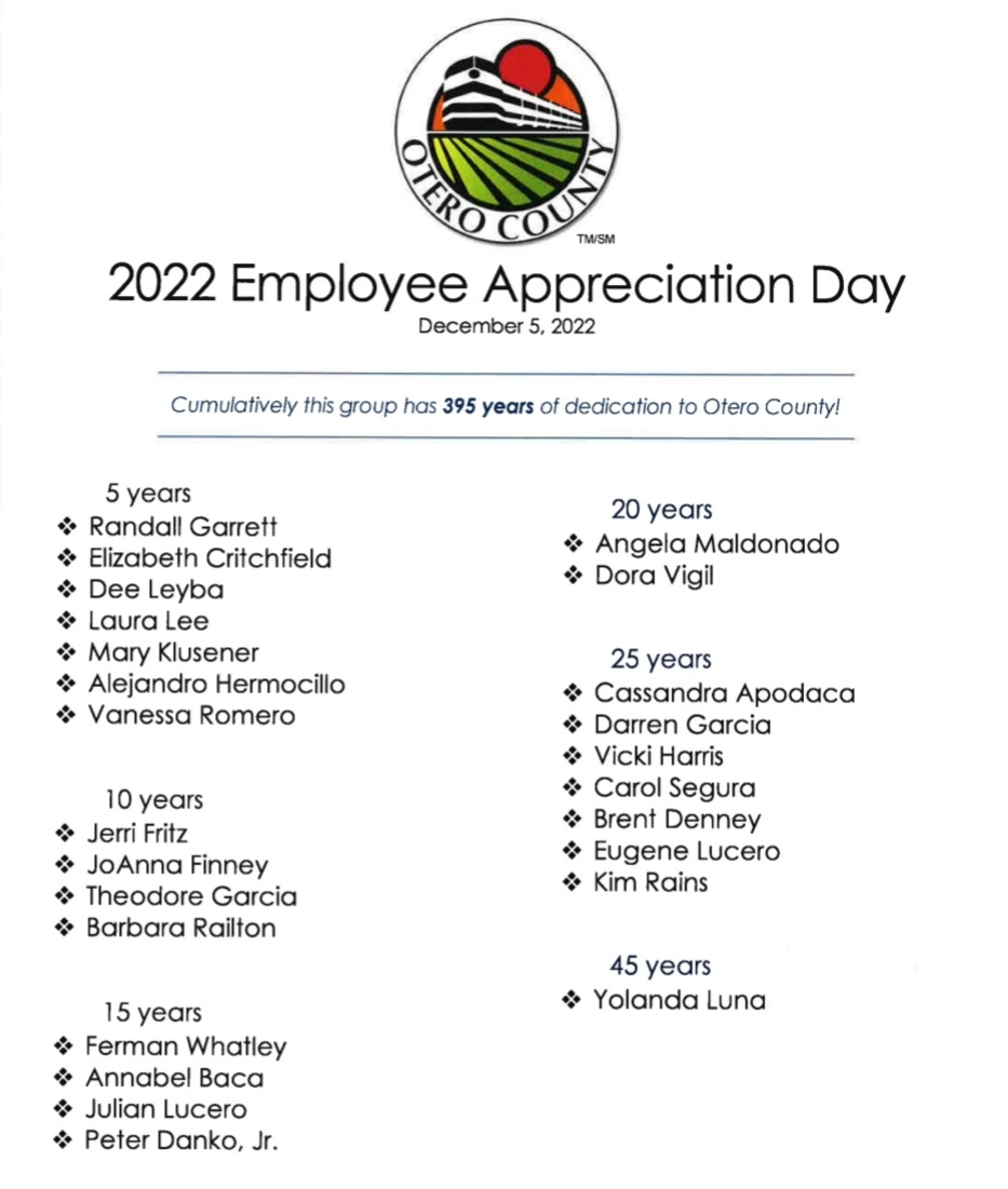 Watch the 2022 Otero County Employee Service Awards Video Here: