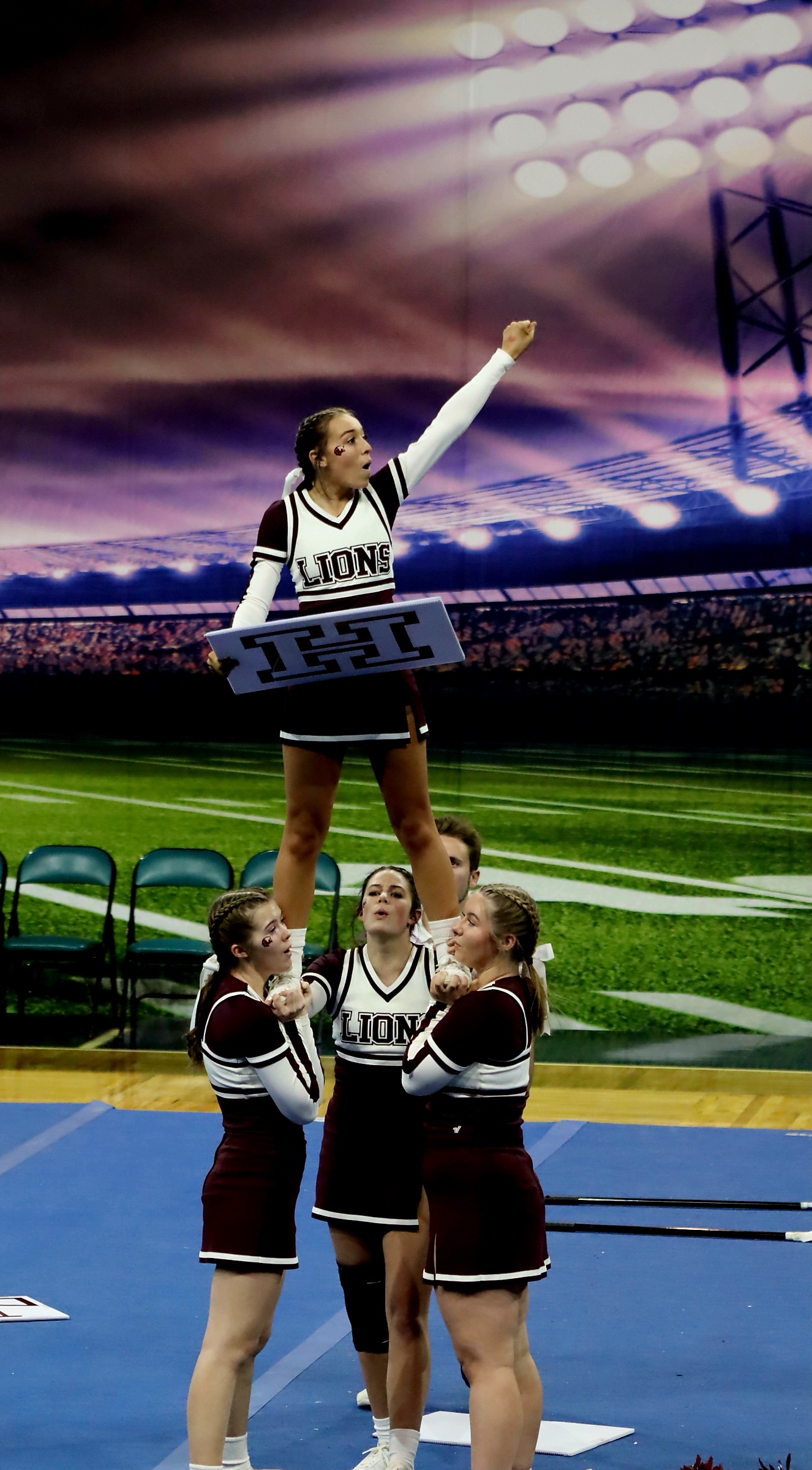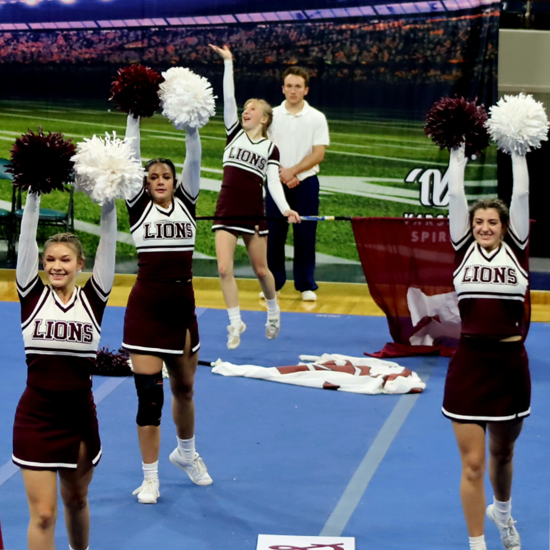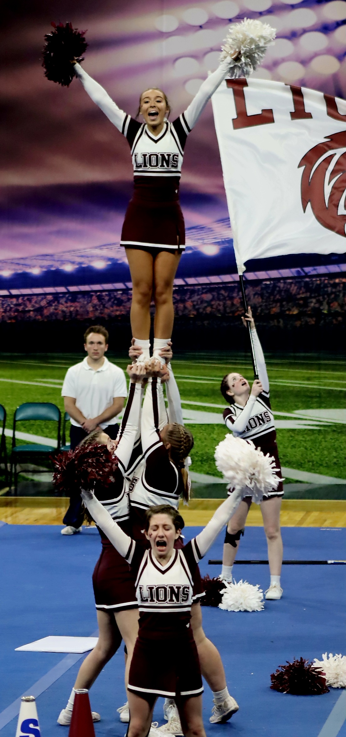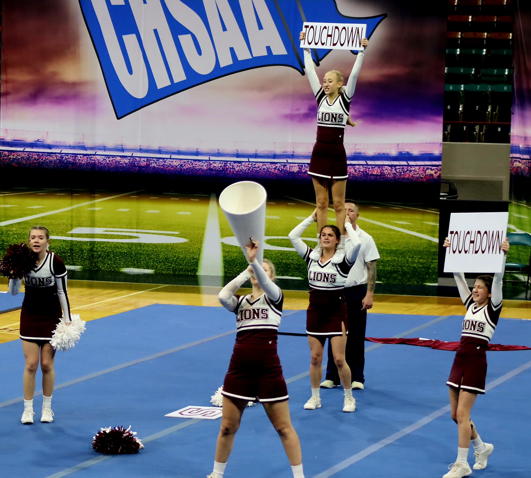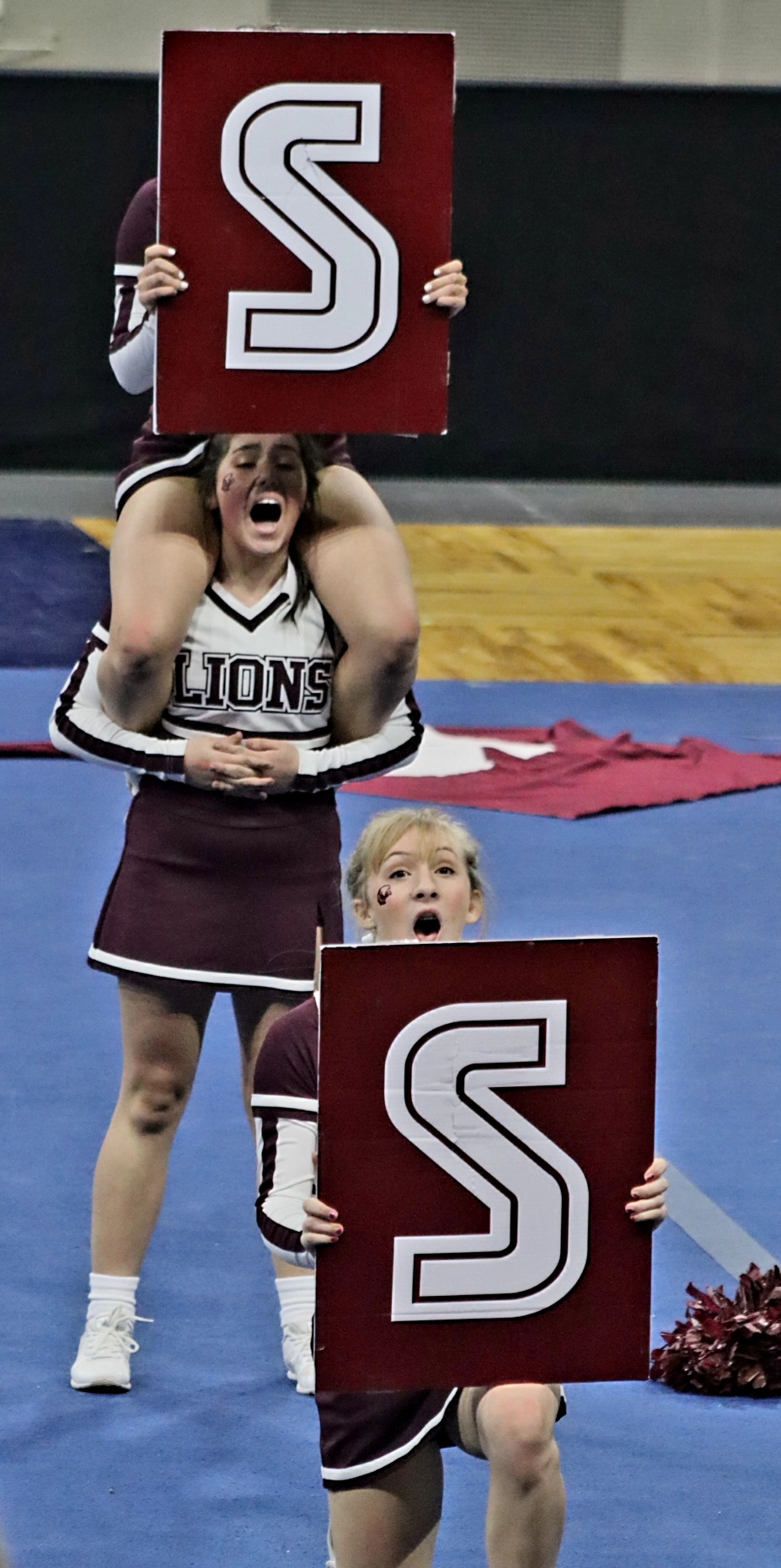 Description: The Swink Lions Cheerleaders Placed 4th in the Game Day Division at The CHSAA 2A-3A State Spirit Championships at the Denver Coliseum on December 8, 2022.