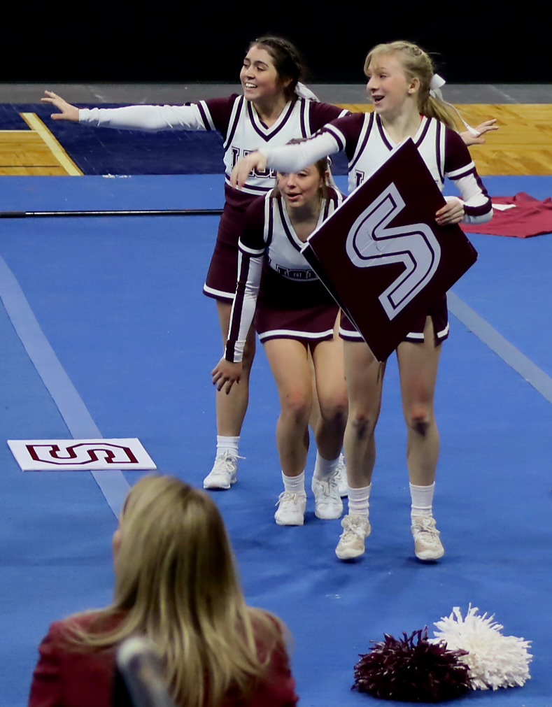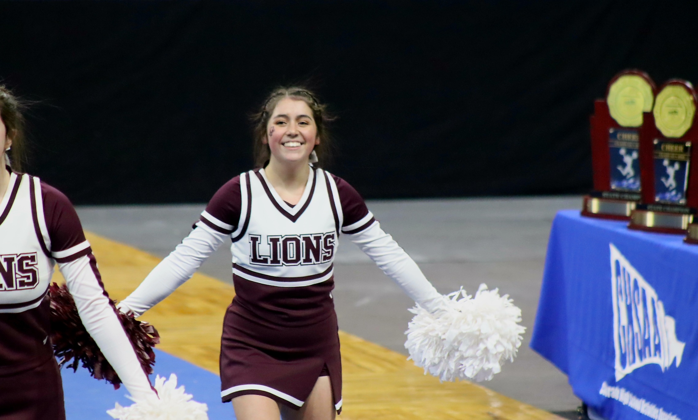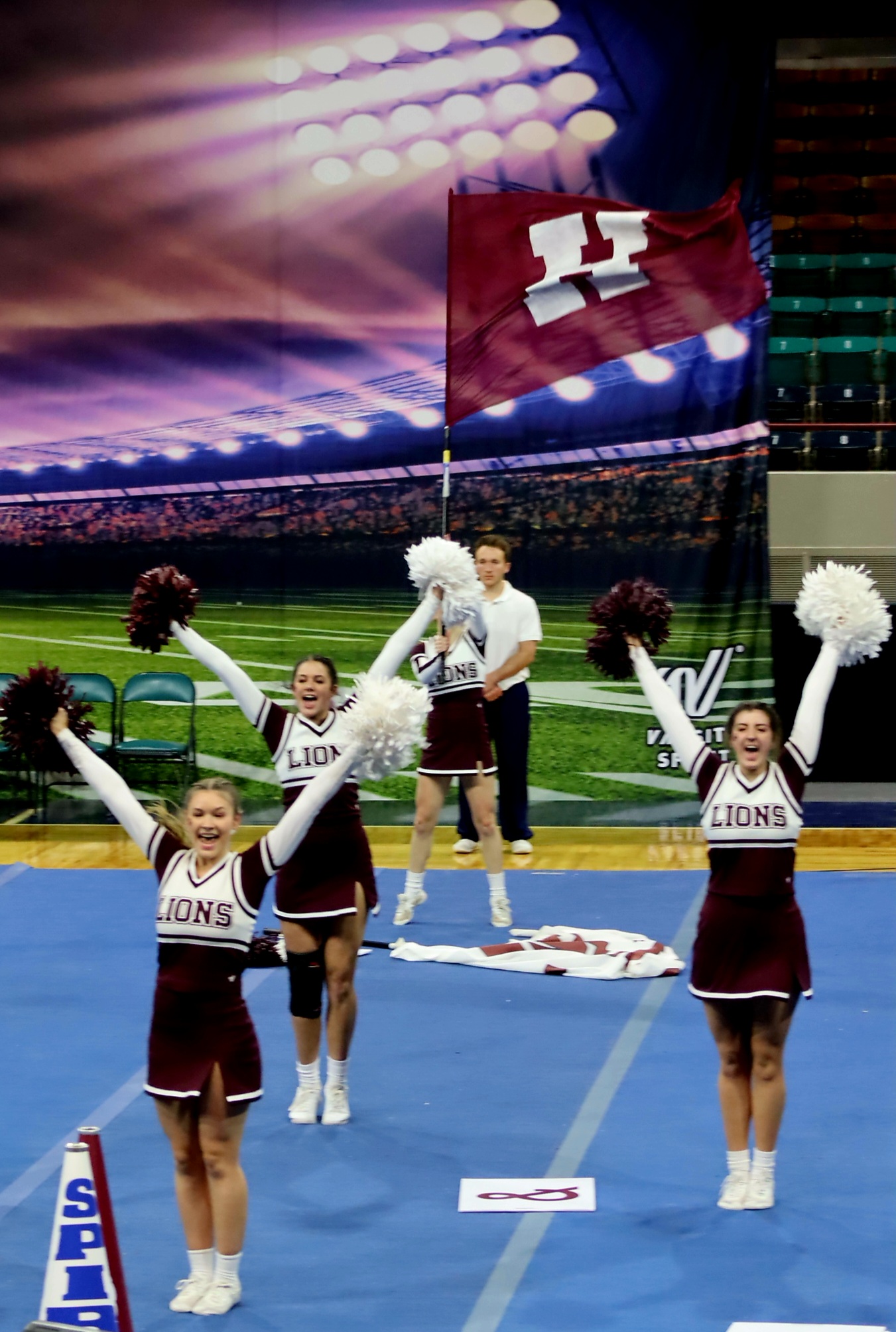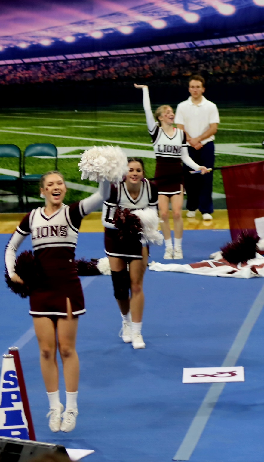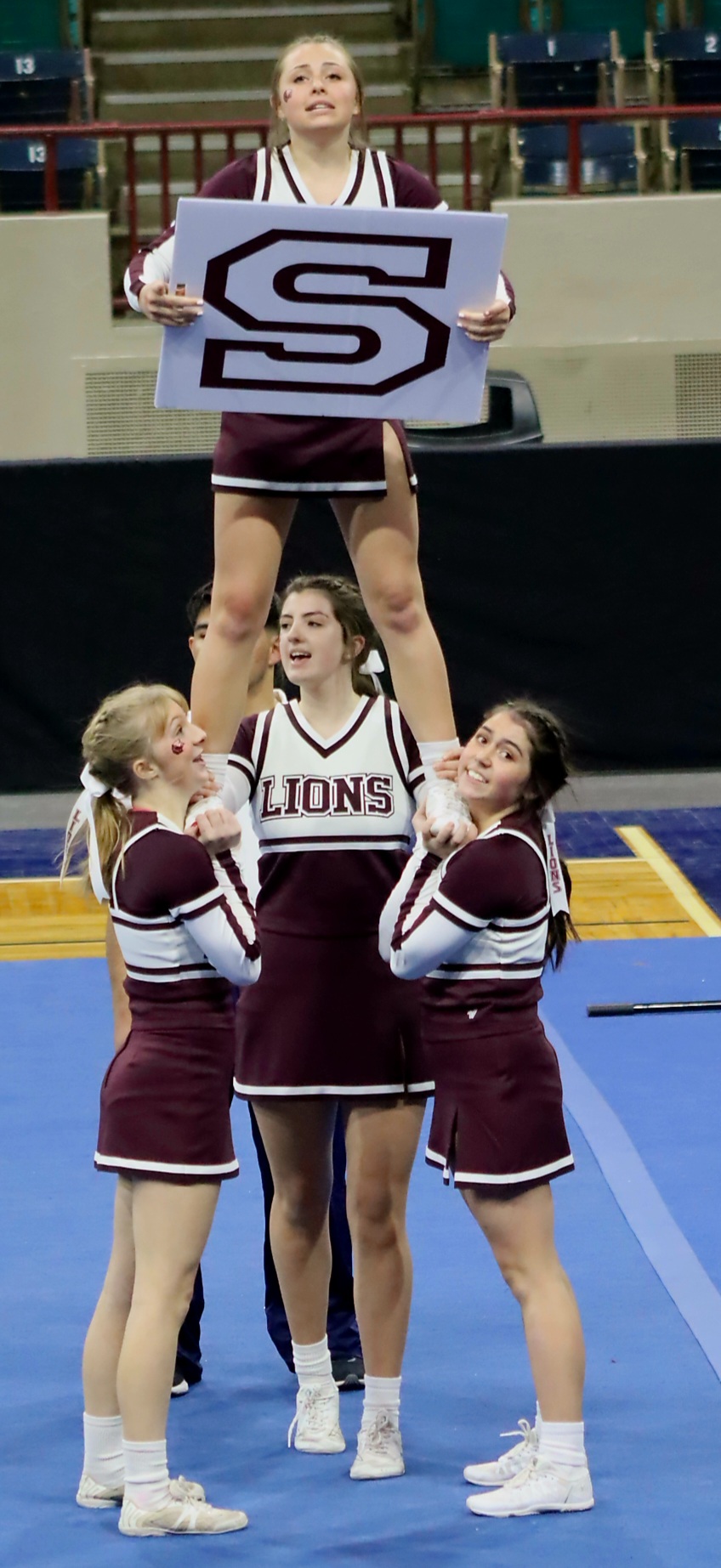 Description: The Swink Lions Cheerleaders Placed 4th in the Game Day Division at The CHSAA 2A-3A State Spirit Championships at the Denver Coliseum on December 8, 2022.