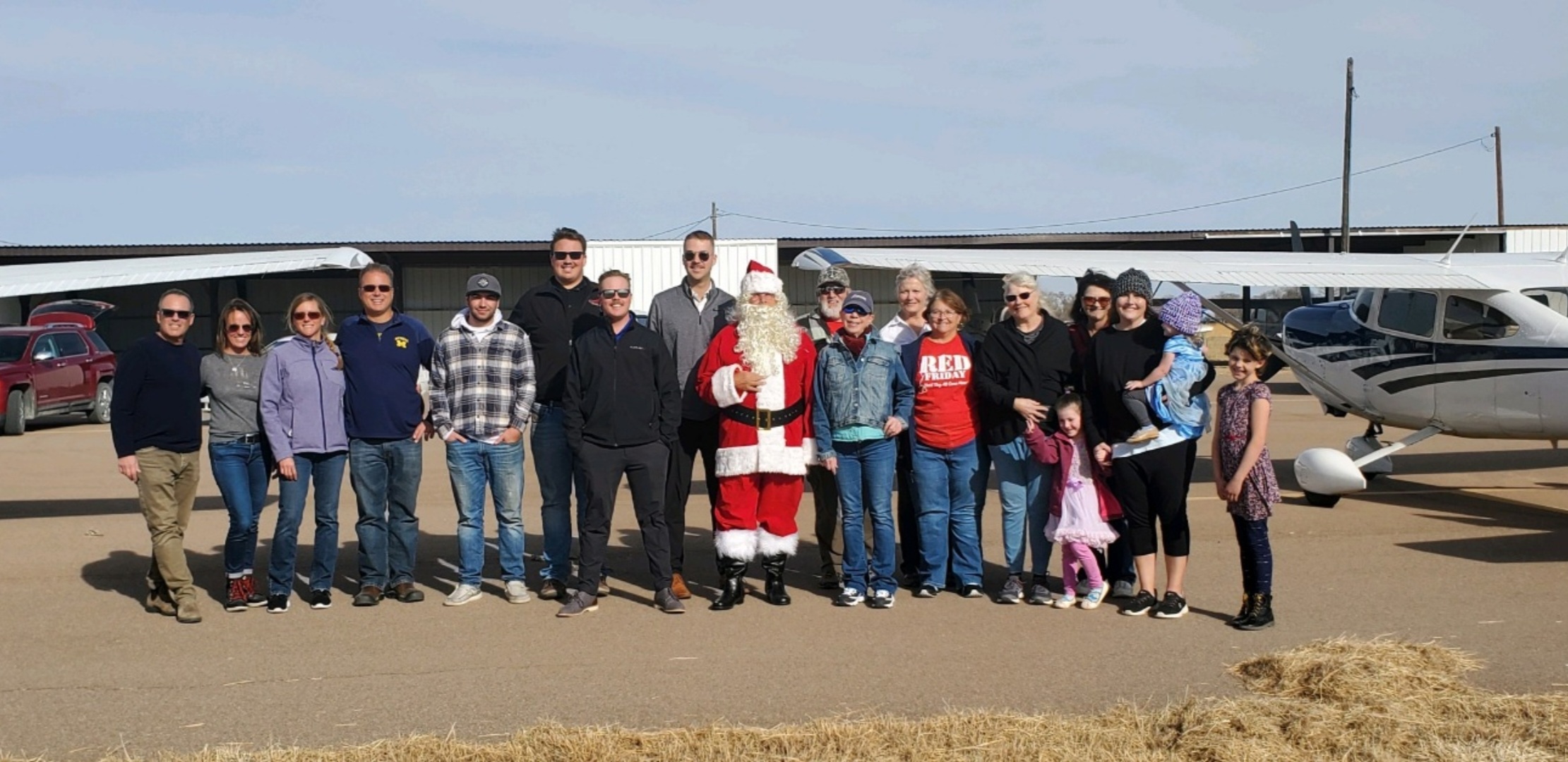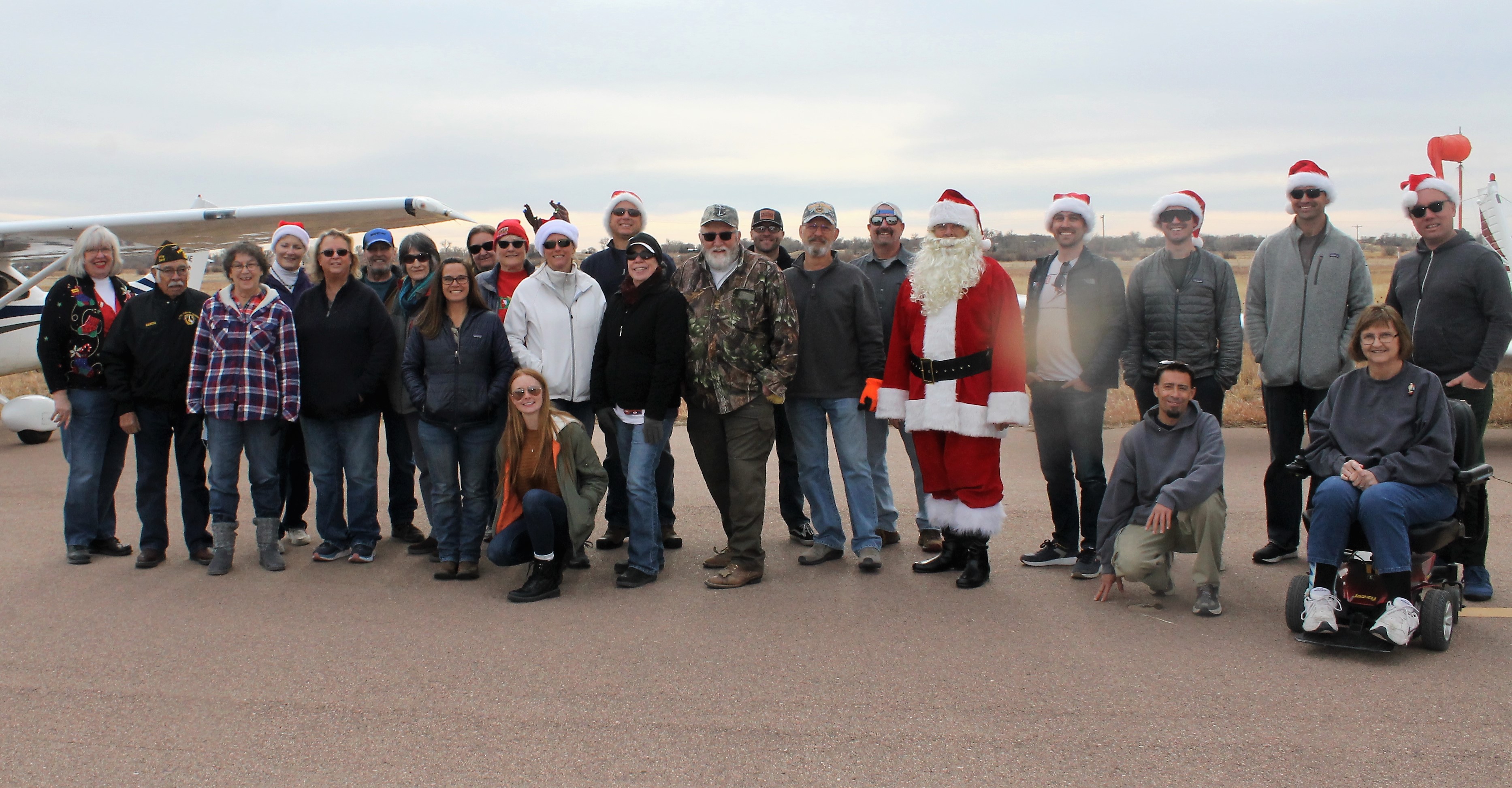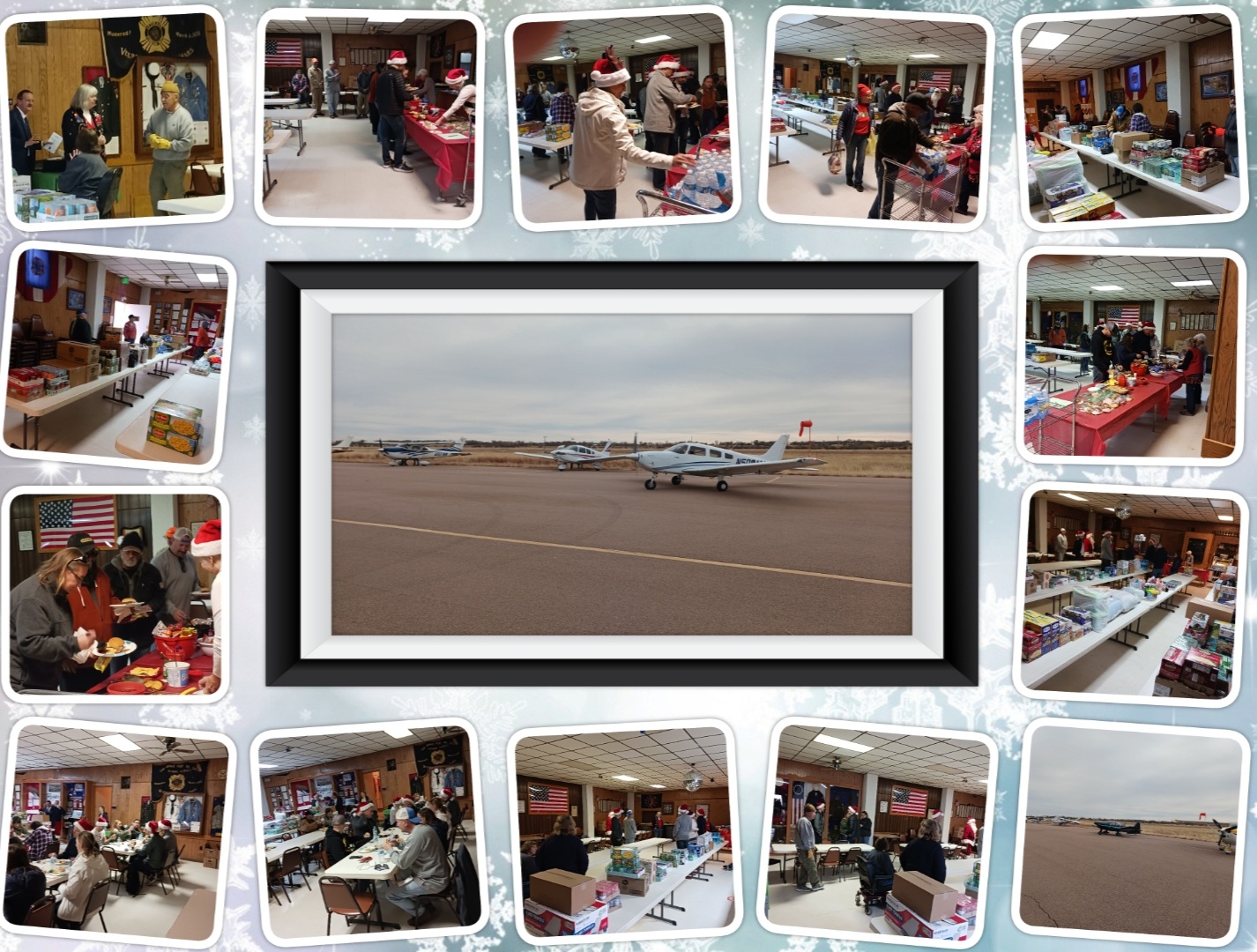 Christmas came early for many veterans and their families thanks to a CABA toys and food drop at Las Animas Airport on December 4th. CABA is the Colorado Aviation Business Association who provides Christmas gifts for veterans in need all over Colorado consisting of food and toys. This was our sixth year of participating. Six planes and nine pilots from the CABA project from Denver landed in perfect weather. Our little airport was filled with the different styles and colors of planes. We are uncertain how many pounds were sent to this area.