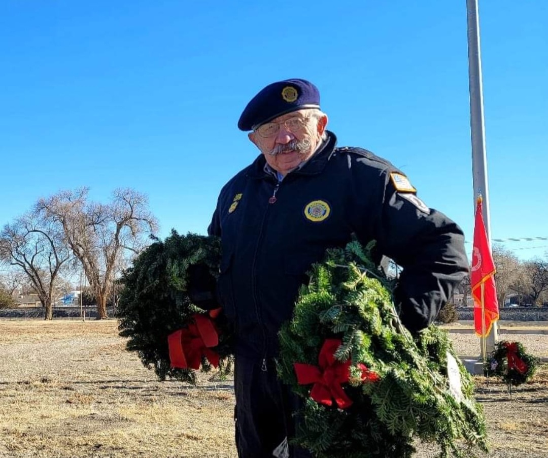 Description: The late Jay Scott with American Legion Post #9 of La Junta passing out wreaths during the 2020 Wreaths Across America Ceremony at Fairview/Calvary Cemetery. (Photo by Adrian Hart)