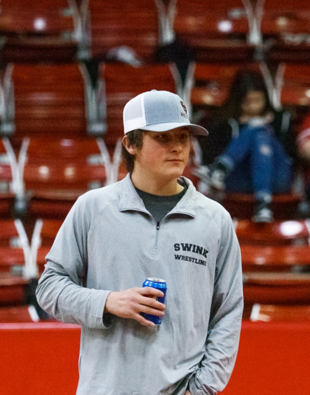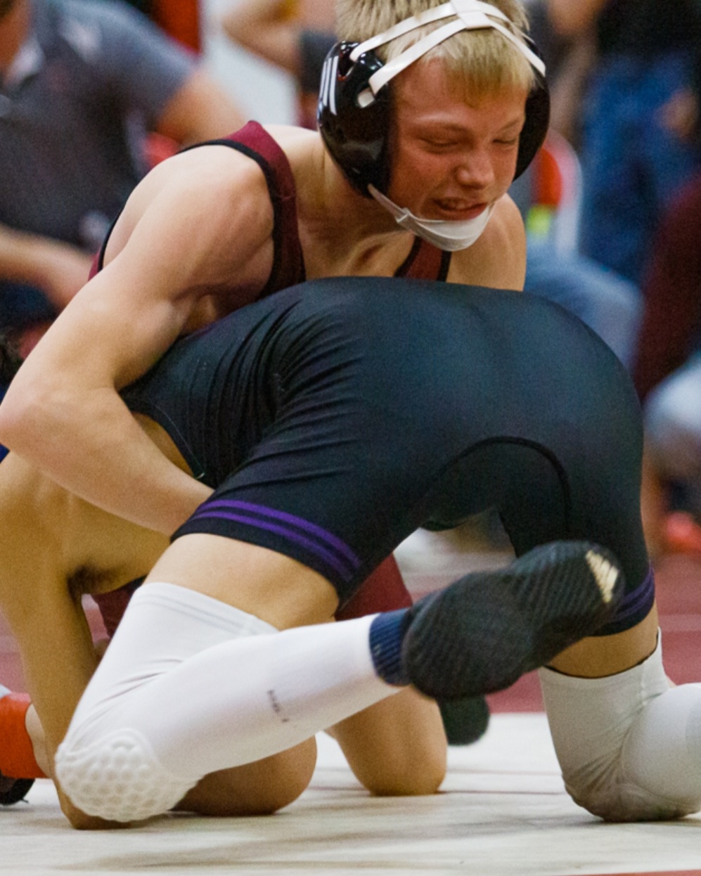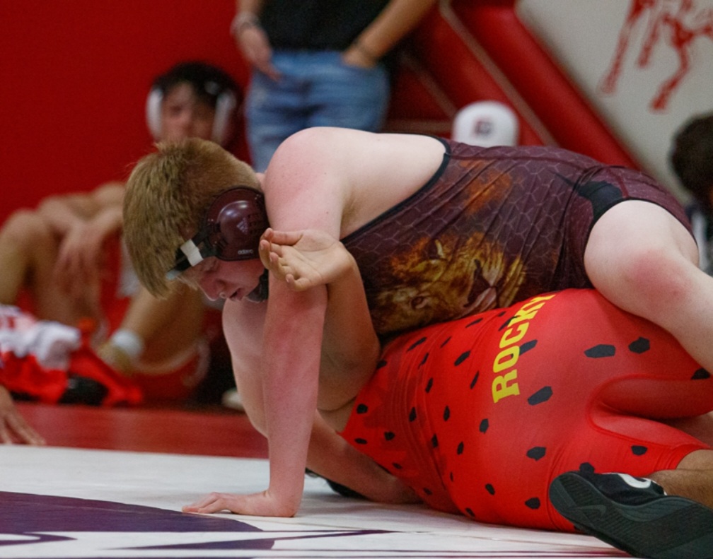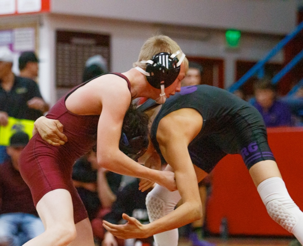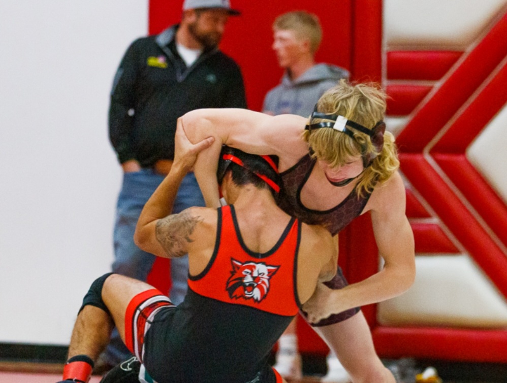 Description: Swink Senior Javen Hall Goes Heels over Head at the Santa Fe League Wrestling Tournament on Jan. 12, 2023. Photos by TC Valdez...