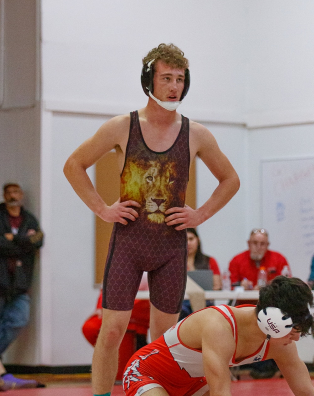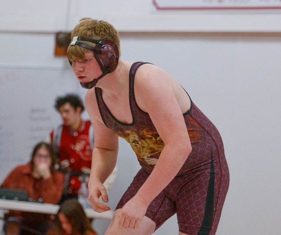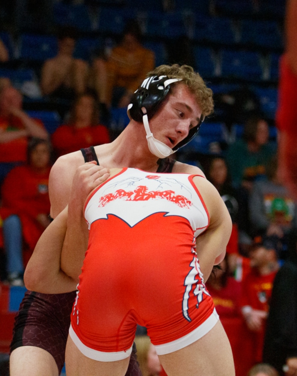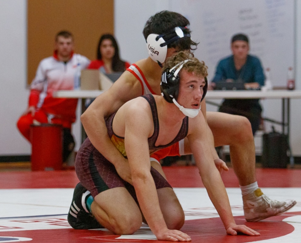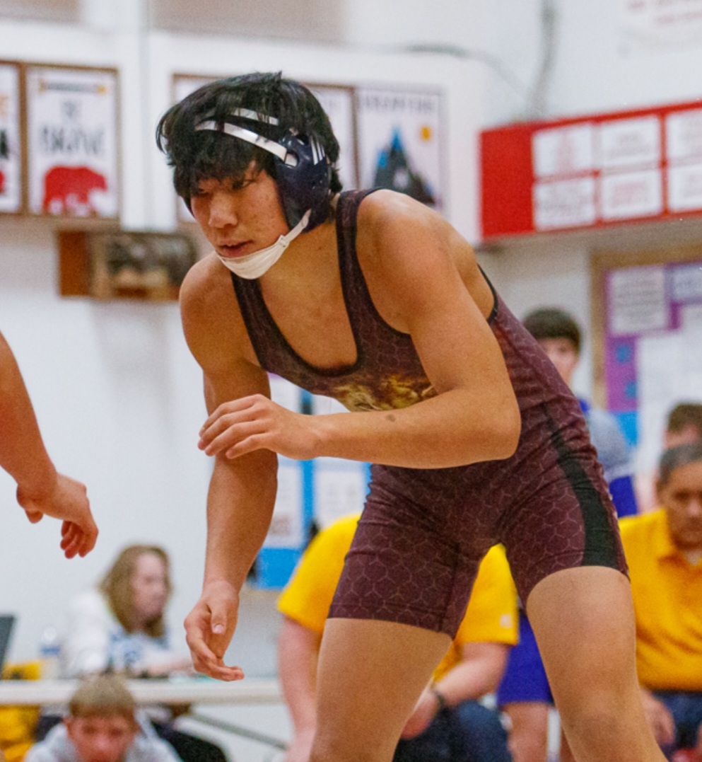 Description: Swink Senior Javen Hall Goes Heels over Head at the Santa Fe League Wrestling Tournament on Jan. 12, 2023. Photos by TC Valdez...