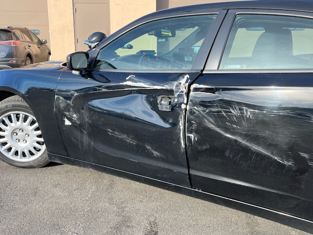 (COLO) – A Colorado State Patrol vehicle sustained moderate damage when a company box truck driver, based out of Colorado Springs, failed to properly hold his lane position and struck the cruiser on the driver’s side as it was traveling in the right lane.