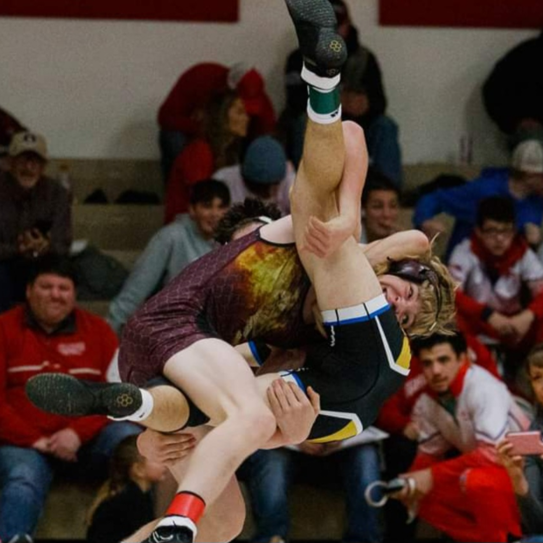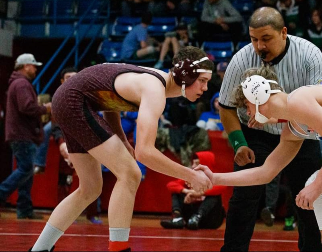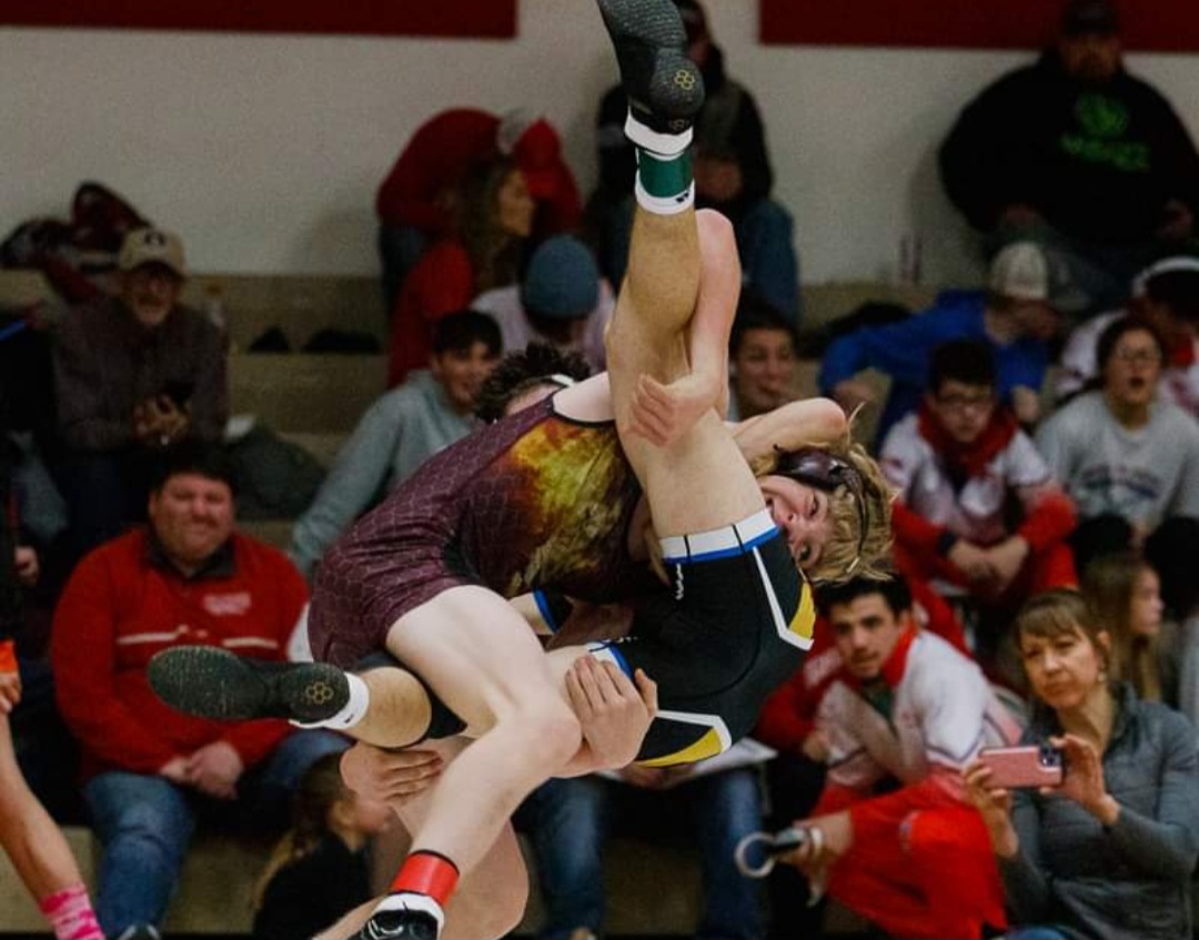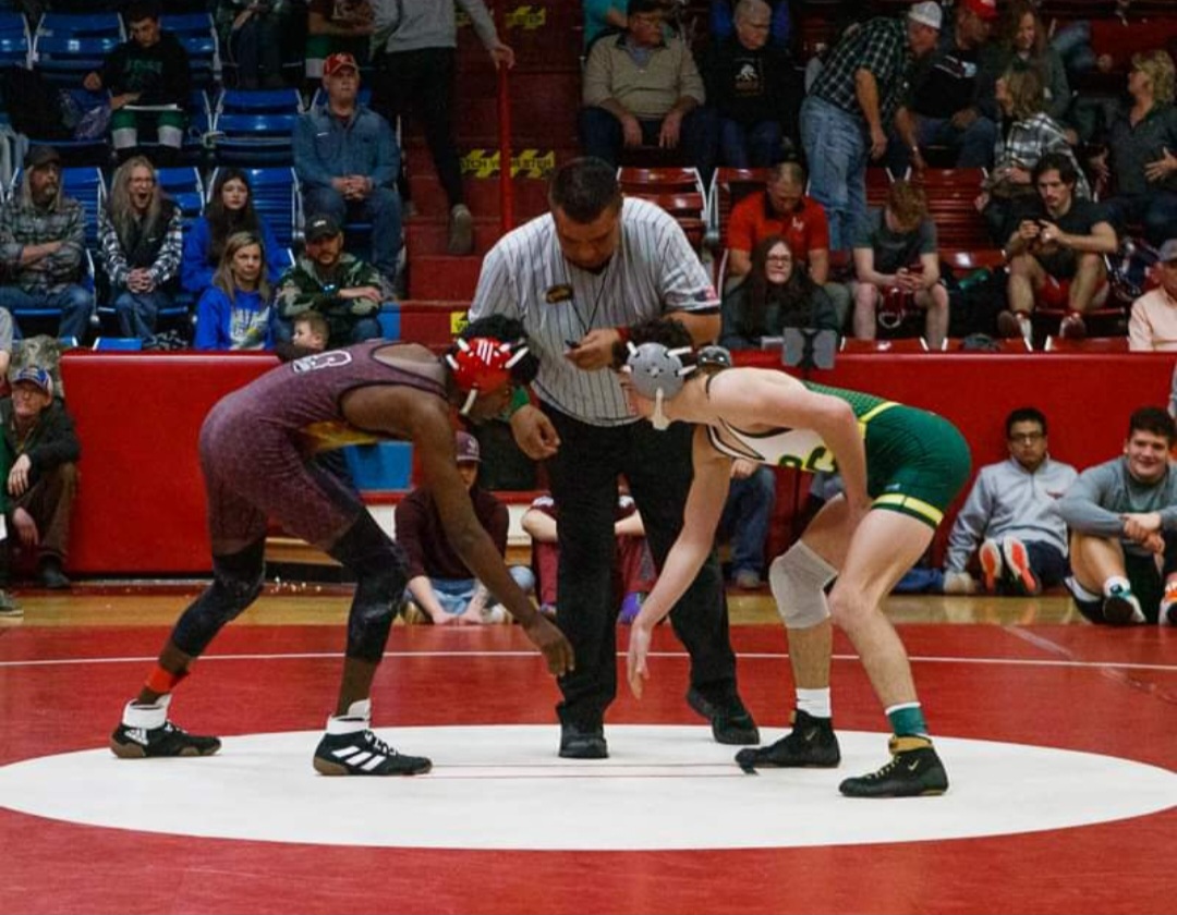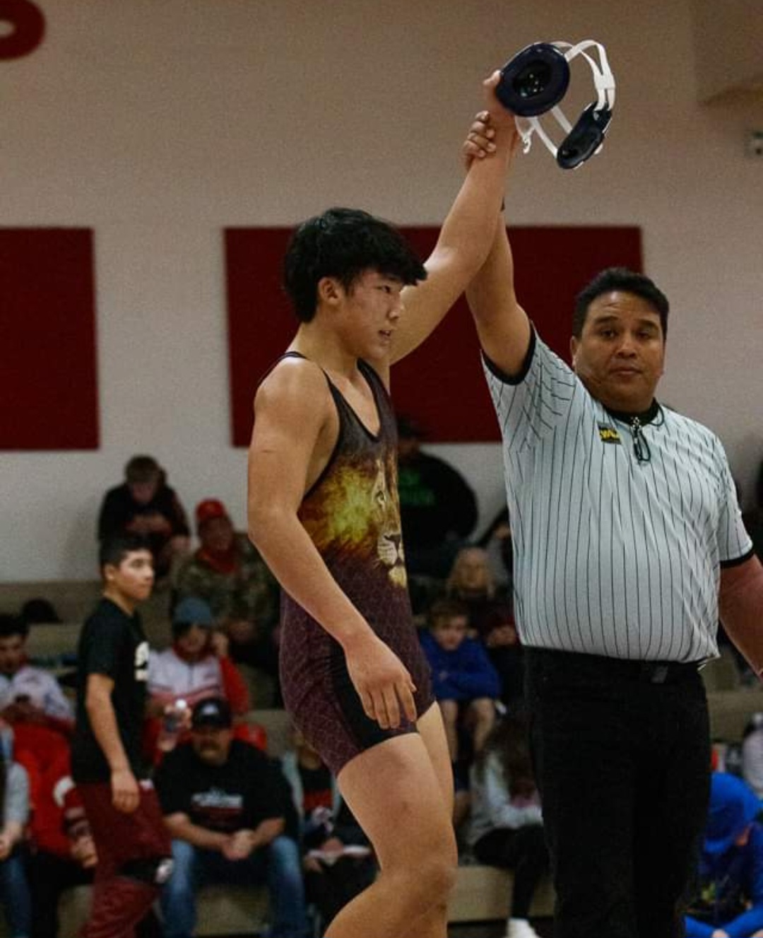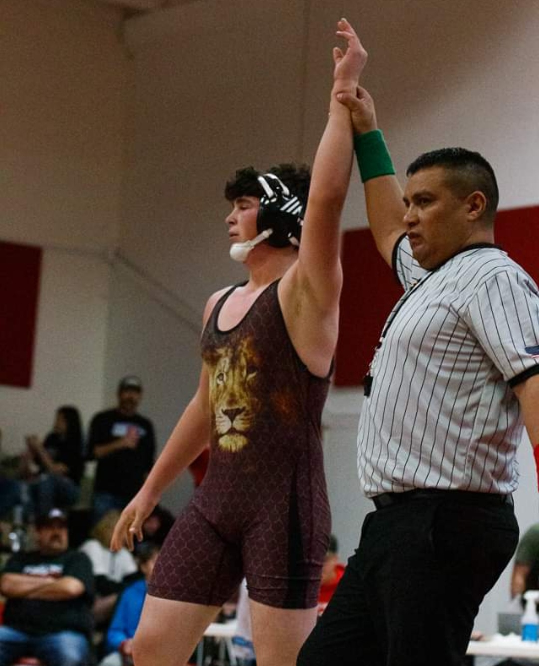 Description: Swink Freshman Judah Hall pivots in pursuit of the winning pin in Crowley County.
