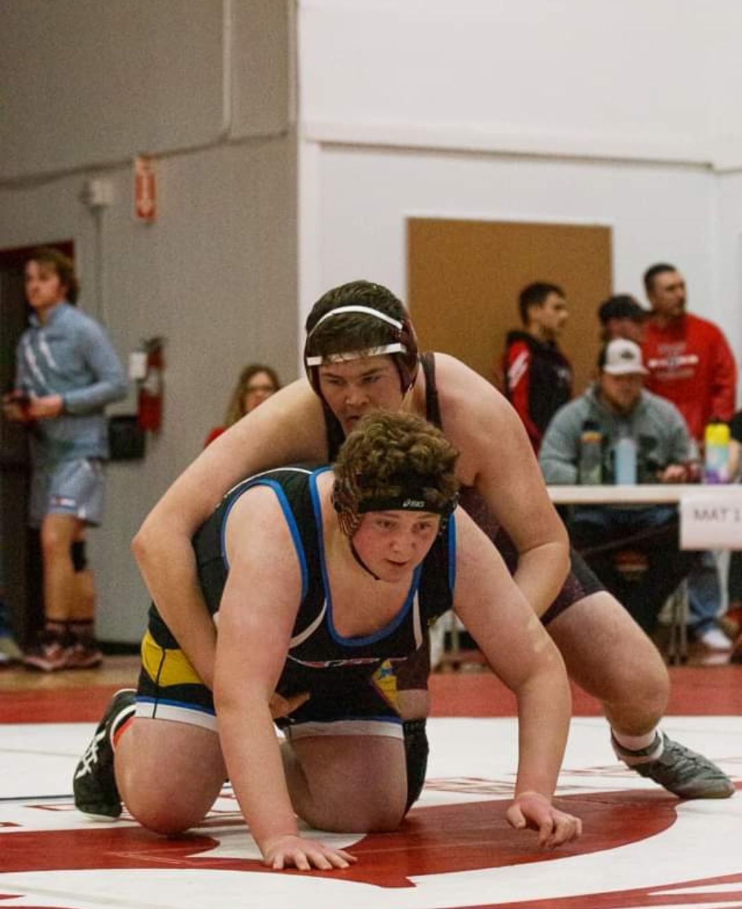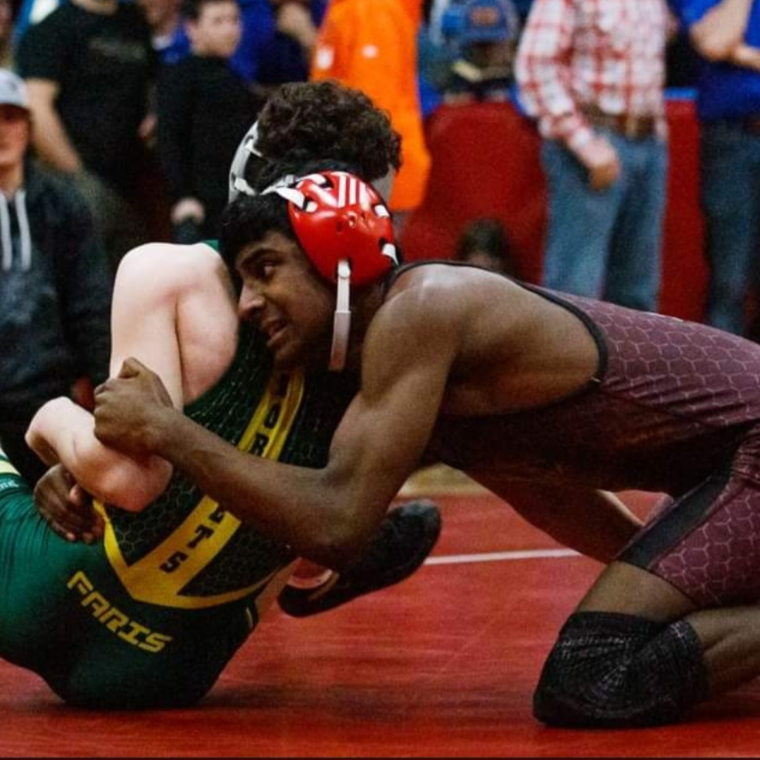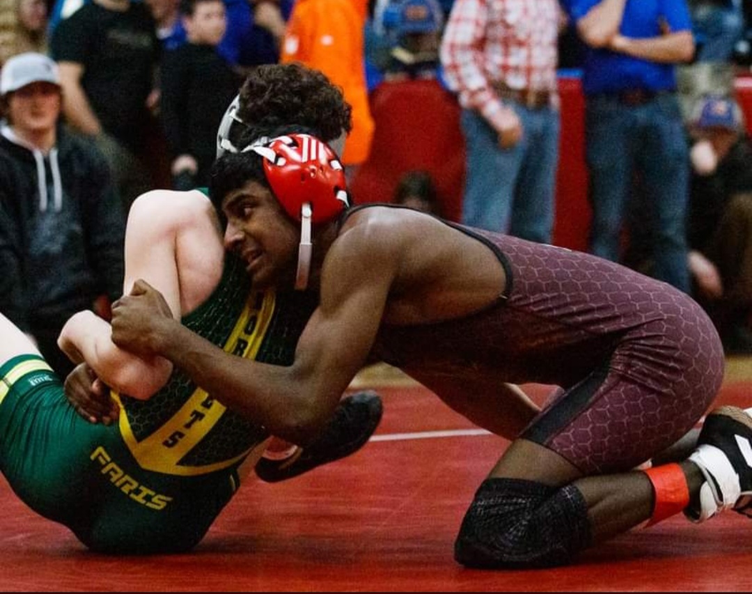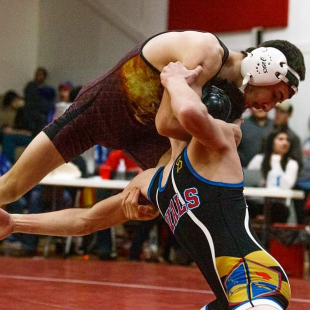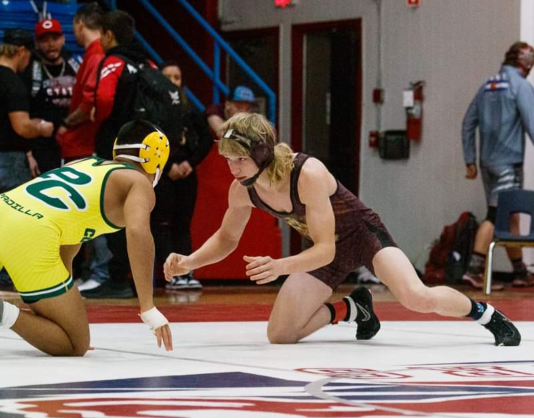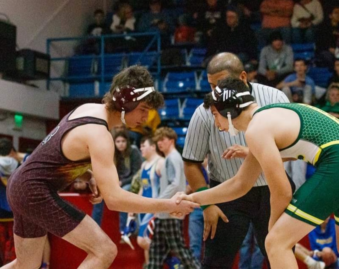 Description: Swink Freshman Judah Hall pivots in pursuit of the winning pin in Crowley County.