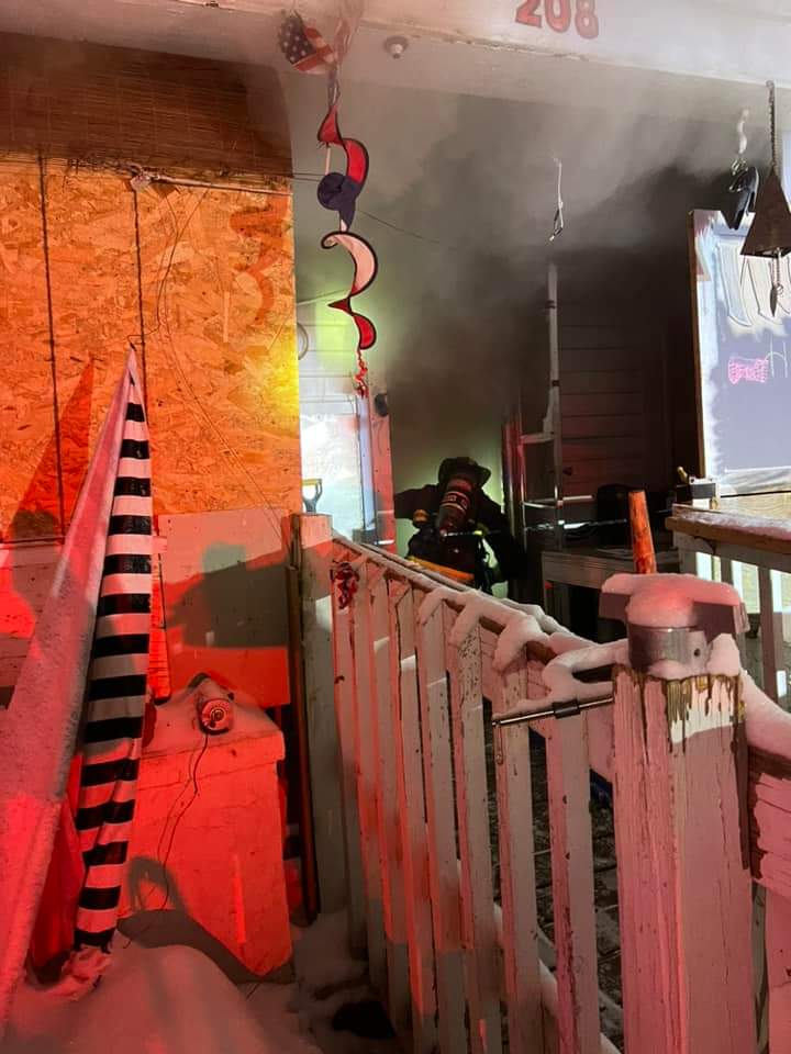 Cold temps and snow made it difficult. No injuries. Cause of the fire was two faulty generators running extension cords.