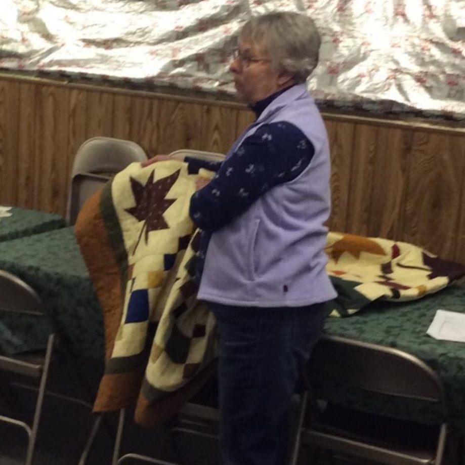 Sara Holt showed a quilt that she researched and produced using all hand making techniques and finished it after 8 months of part-time work.