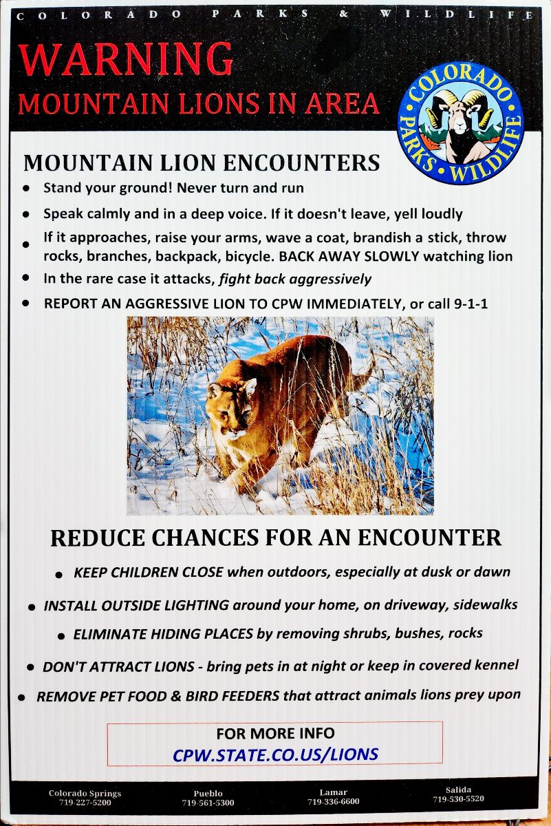 Though mountain lion attacks are relatively rare, it is important to know how to avoid or manage potential encounters. To learn more about living with mountain lions in Colorado, go to https://cpw.state.co.us/lions.