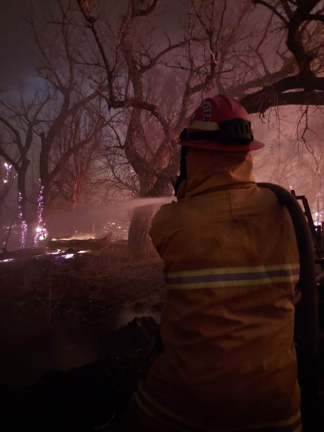 On March 22nd 2023, at 3:58 pm, Prowers County Rural Fire was paged to a grass fire on US Hwy 50 east of Lamar at mile marker 443. The first units on scene reported a grass fire moving northeast from US 50 toward the Arkansas River, County Road 19, and CO Hwy 196. Wind speeds at the time were 32 MPH gusting to 47 MPH out of the southwest. The fire grew quickly due to the dry and windy conditions, but was eventually fully contained to the Arkansas River bottom by 1:30 am on March 23rd.
