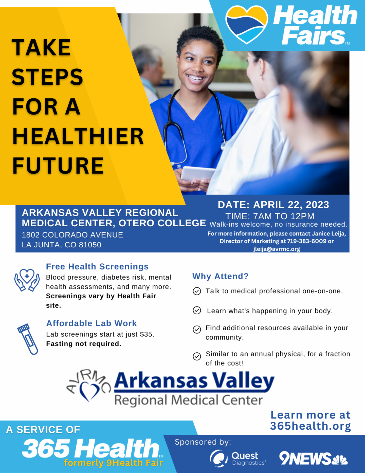 Arkansas Valley Regional Medical Center Health Fairs April 22nd!