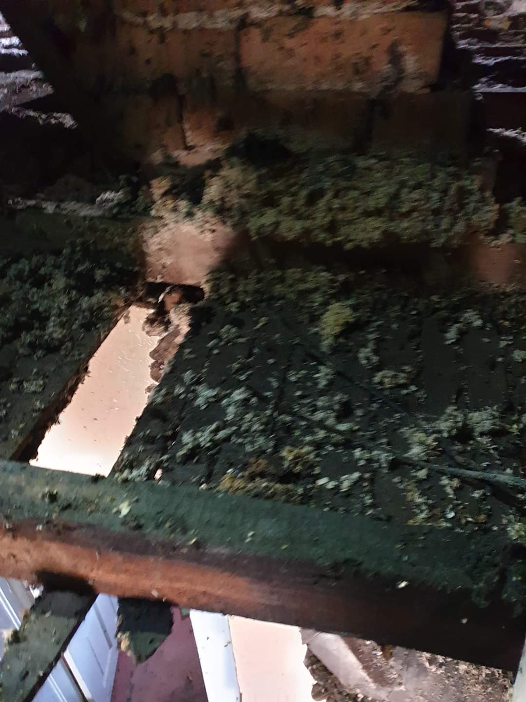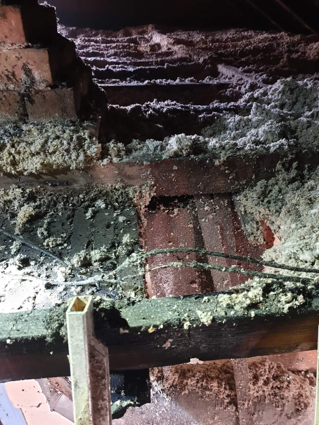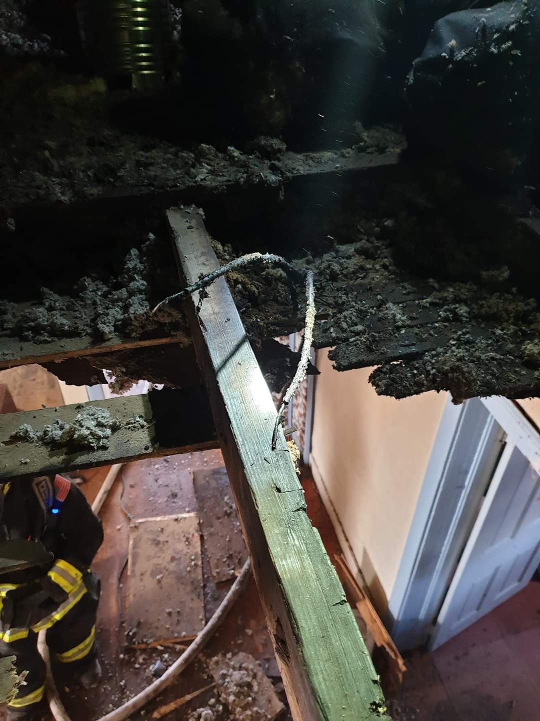 This caused smoldering insulation to develop over time into fire extension along ceiling.
