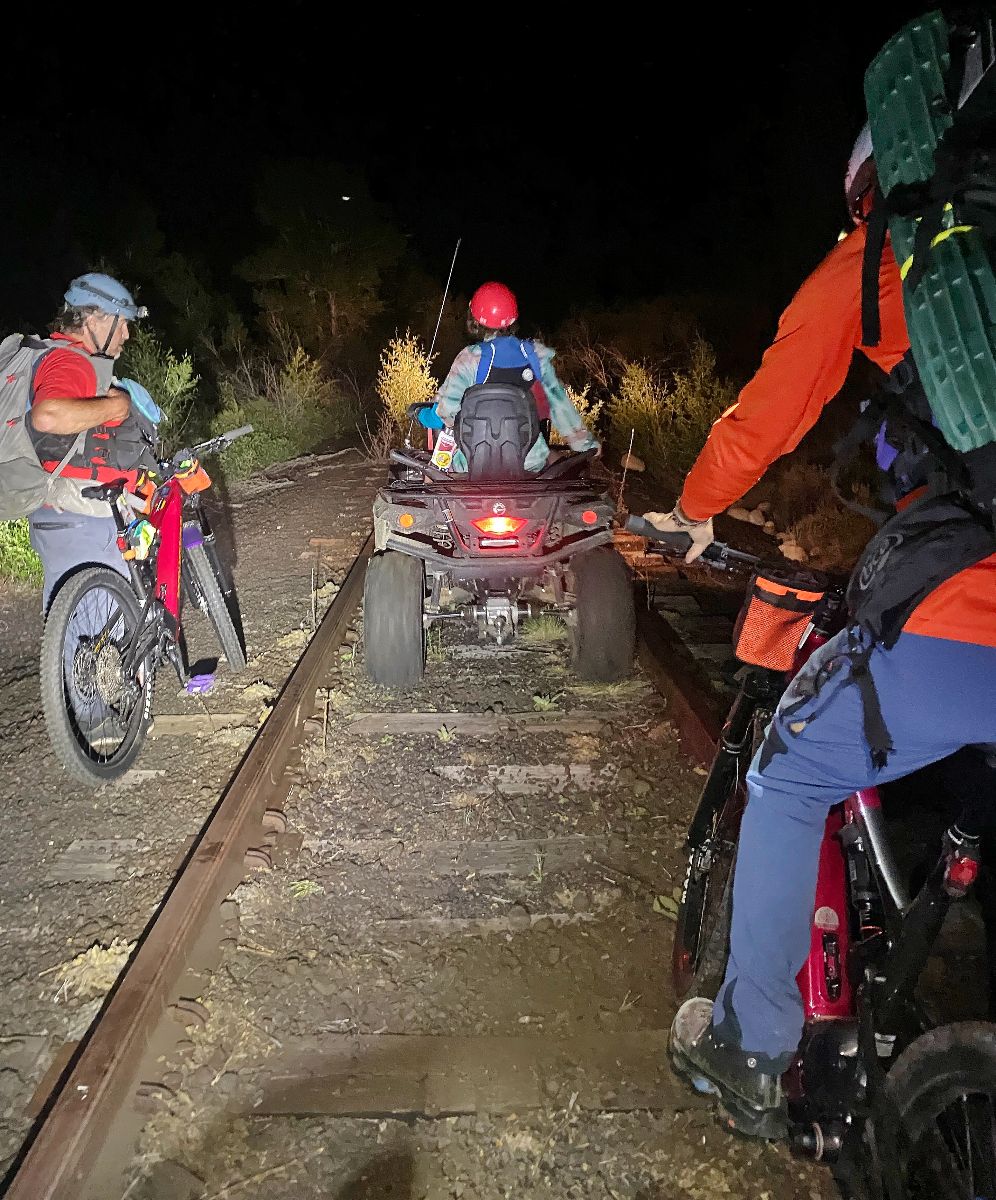 It was approaching 11:30 p.m. when Hammond hopped on the back of an SAR ATV with his gear, kayak and paddle and off they rode into the darkness, bouncing down the railroad tracks as the river roared below them through the rapids of the canyon.