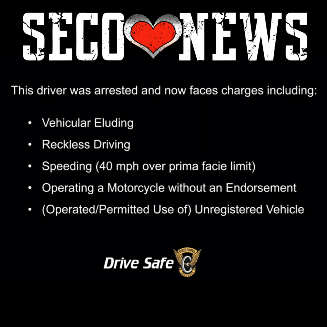 The trooper intentionally disengaged the pursuit to avoid endangering the public more, and the Patrol’s aircraft unit followed the motorcycle rider to his final destination. With information passed from the air to the ground, troopers responded to that location, contacted the driver and arrested him. The driver was charged with Felony Vehicular Eluding, Reckless Driving and Speeding 40+, among other charges.