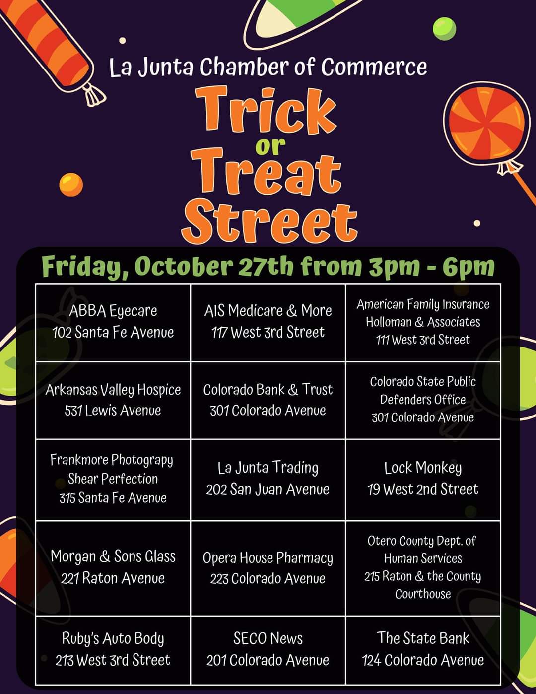 Description: 2023 SECO News Halloween Event Guide... Sponsored by: The La Junta Chamber of Commerce, The Tim Trujillo Insurance Agency, Reflexology and Massage with A Hart, La Junta Trading Company, Klein Makerspace, and The A.R.T. Project... Complete Guide in Gallery Below...