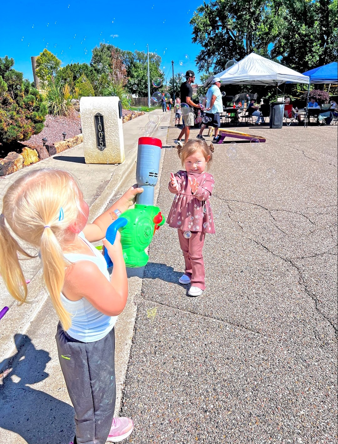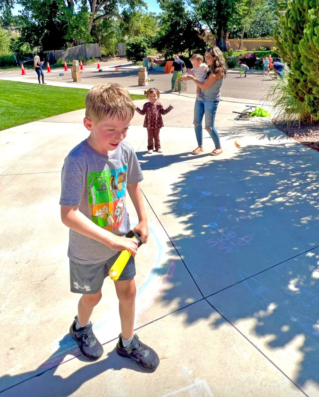 The younger kids enjoyed bubbles, sidewalk chalk, a coloring station and the chalk sidewalk challenge.