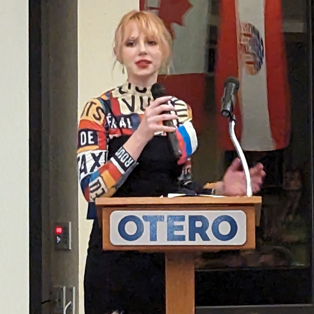 A new feature this year was a photo booth, enjoyed by both students and guests. As usual, guests stuffed raffle tickets into boxes, hoping to go home with some donated prizes such as Otero athletic gear, community concert tickets, gift certificates from local restaurants, and even a huge teddy bear. The silent auction had people scurrying to write their names down before the sheets were picked up, with more donated items such as art from Otero staff, gift baskets, more Otero gear, and even a chance to have some fun with an excavator up for grabs. Auctioneer Jace Honey made the live auction especially lively, with several bid-offs. Live auction items included what was billed as a "huge" rock, two jars of salsa made by International Student coordinator Jamie Mendoza, a photography package, two La junta-opoly games plus cocktails, and more.