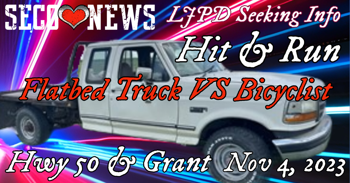 On November 4th at approximately 15:50 hours a bicyclist was traveling eastbound on US Hwy 50 approaching the turn lane with Grant Avenue in La Junta when he was hit by a white mid 90s Ford extended cab pickup.