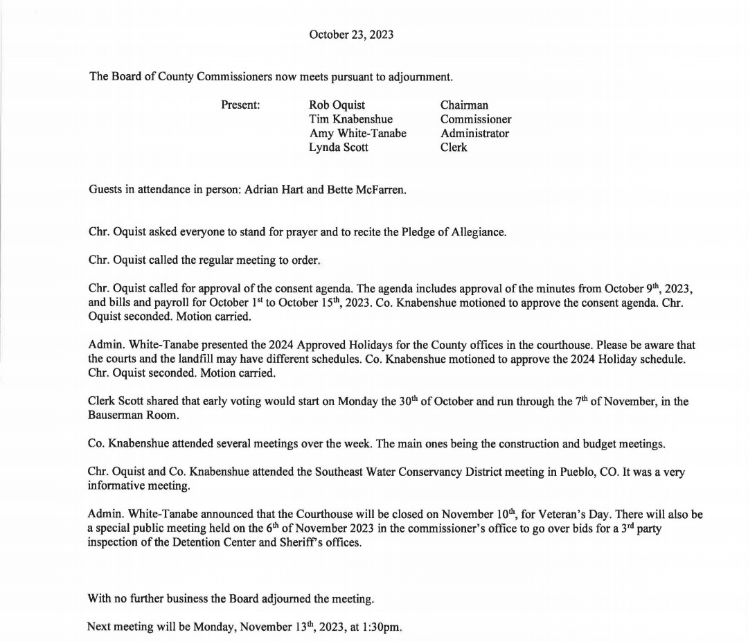 Otero County Commissioners Meeting Nov 13, 2023
