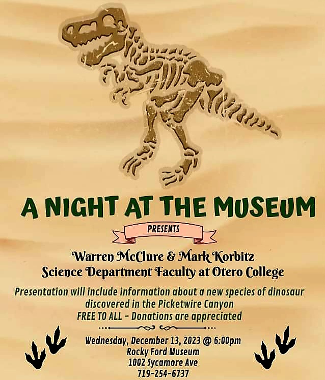 Rocky Ford Night at the Museum: New Dinosaur Species Discovered! Dec. 13, 2023