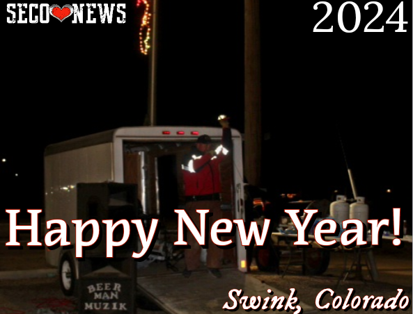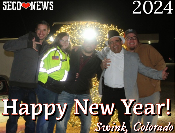 The People of Southeast Colorado Rang in 2024 with Two Light Ball Drops. Both SECO News Publisher Adrian Hart at the Otero College Ag Gala and Kenny Ray Arguello of ArguelloWay at the 4th Annual Wayne Walter Community Flag New Years Eve Ball Drop in Swink, Colorado went Live on SECO News for the occasion.