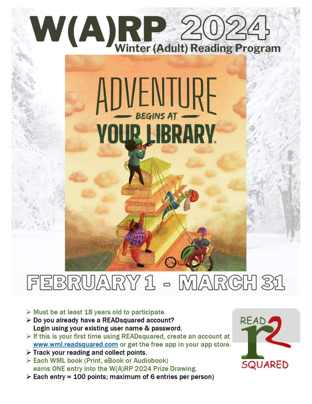 Please make sure you take a look at the calendar and the info about W(A)RP 2024 … Winter (Adult) Reading Program!
