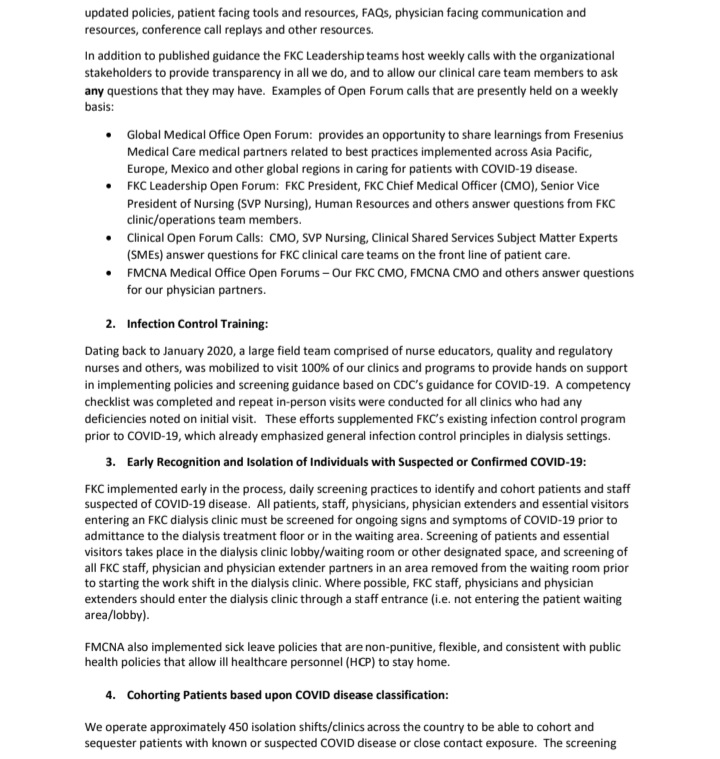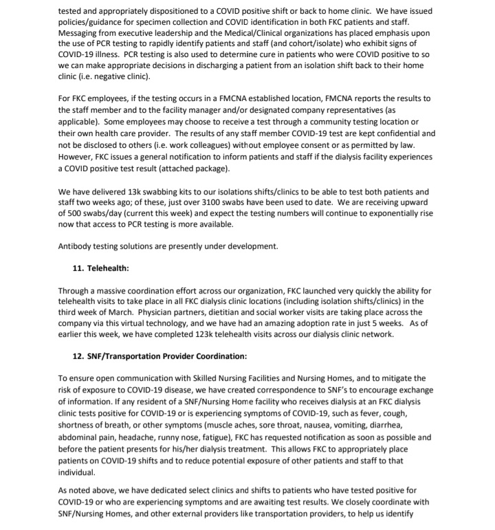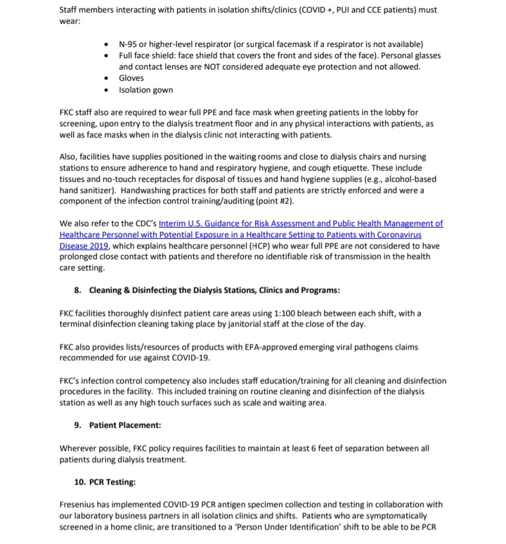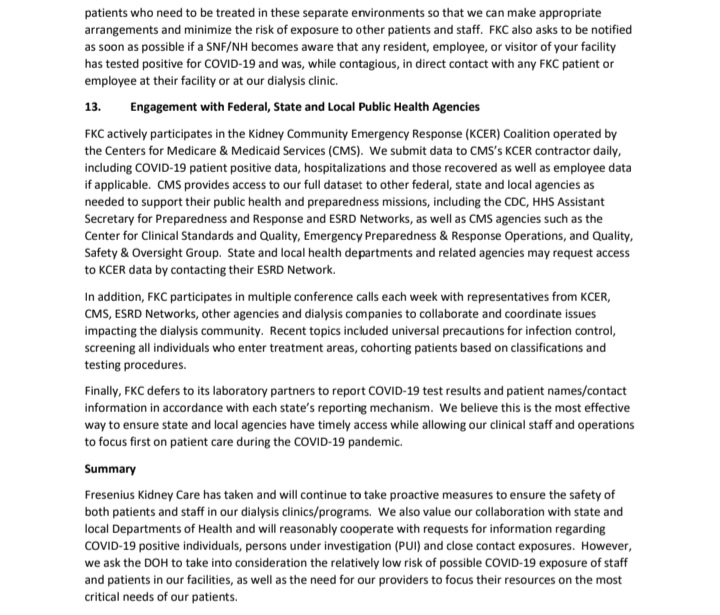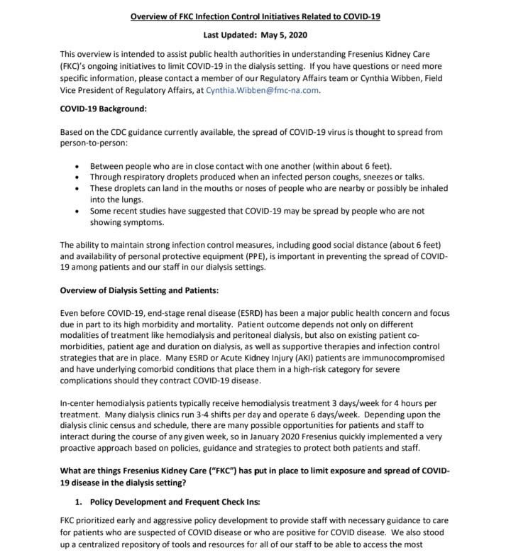 - La Junta Fresenius: Before any patient/client of the La Junta Fresenius facility reports for kidney care, please make sure that you have thoroughly reviewed the Fresenius policies regarding COVID-19 and please abide by them. These policies are in place to lower the risk of COVID-19 infection for both Fresenius staff and patients. I have attached a couple of documents from Fresenius relative to COVID-19. If you have any questions about Fresenius COVID-19 policies, contact their patient resource line at 1-800-881-5101, then you will be directed to the appropriate person depending on your question.