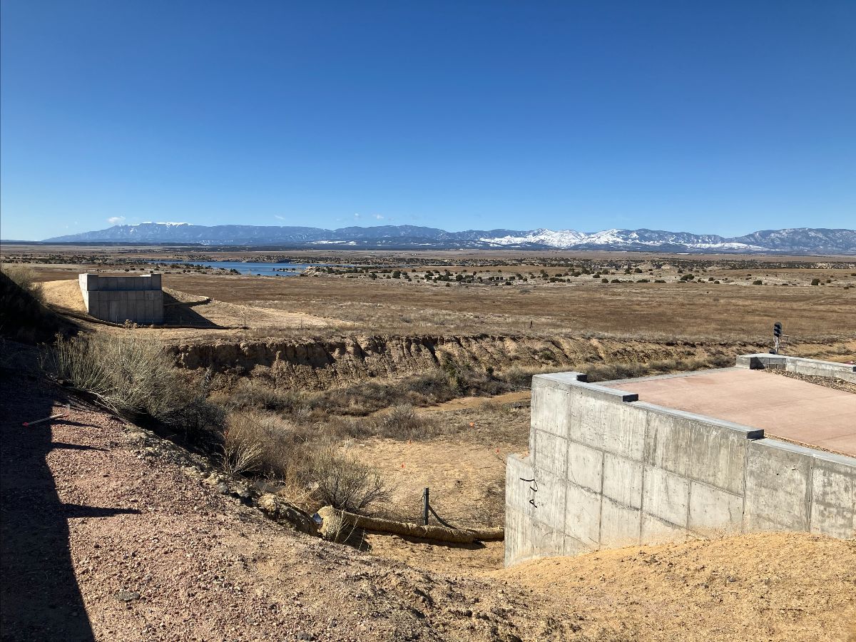 Description: Concrete bridge abutments await a new pedestrian bridge that will be installed on April 2 to span the ravine carrying Union Pacific Railroad tracks in the ravine below. Adjacent South Nichols Road will be closed to allow crews to park two cranes that will lift the new bridge into place. Photo courtesy of Colorado Parks and Wildlife / Joe Stadterman