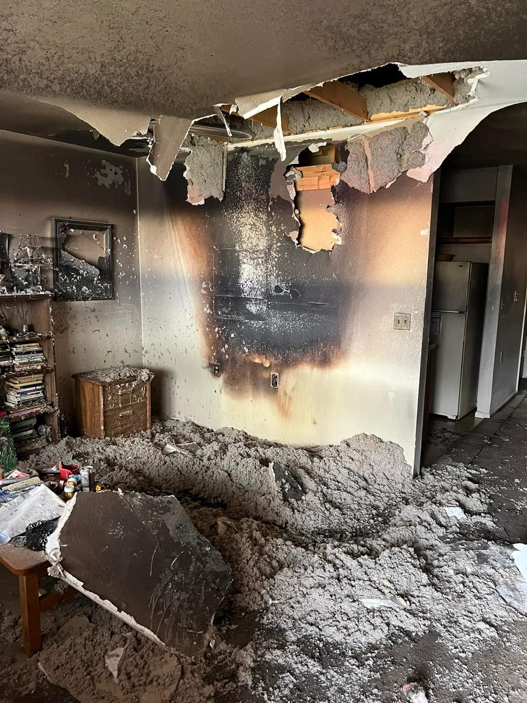 Crews searched the neighboring apartment to make sure of no fire extension. Overhaul started and the ceiling was removed to make sure the fire didn’t make it into the attic.