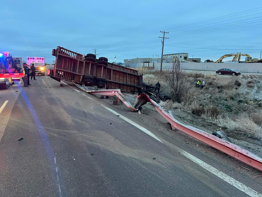 Hwy 50 was shut down while crews stabilized the truck and trailer and took care of hazards.