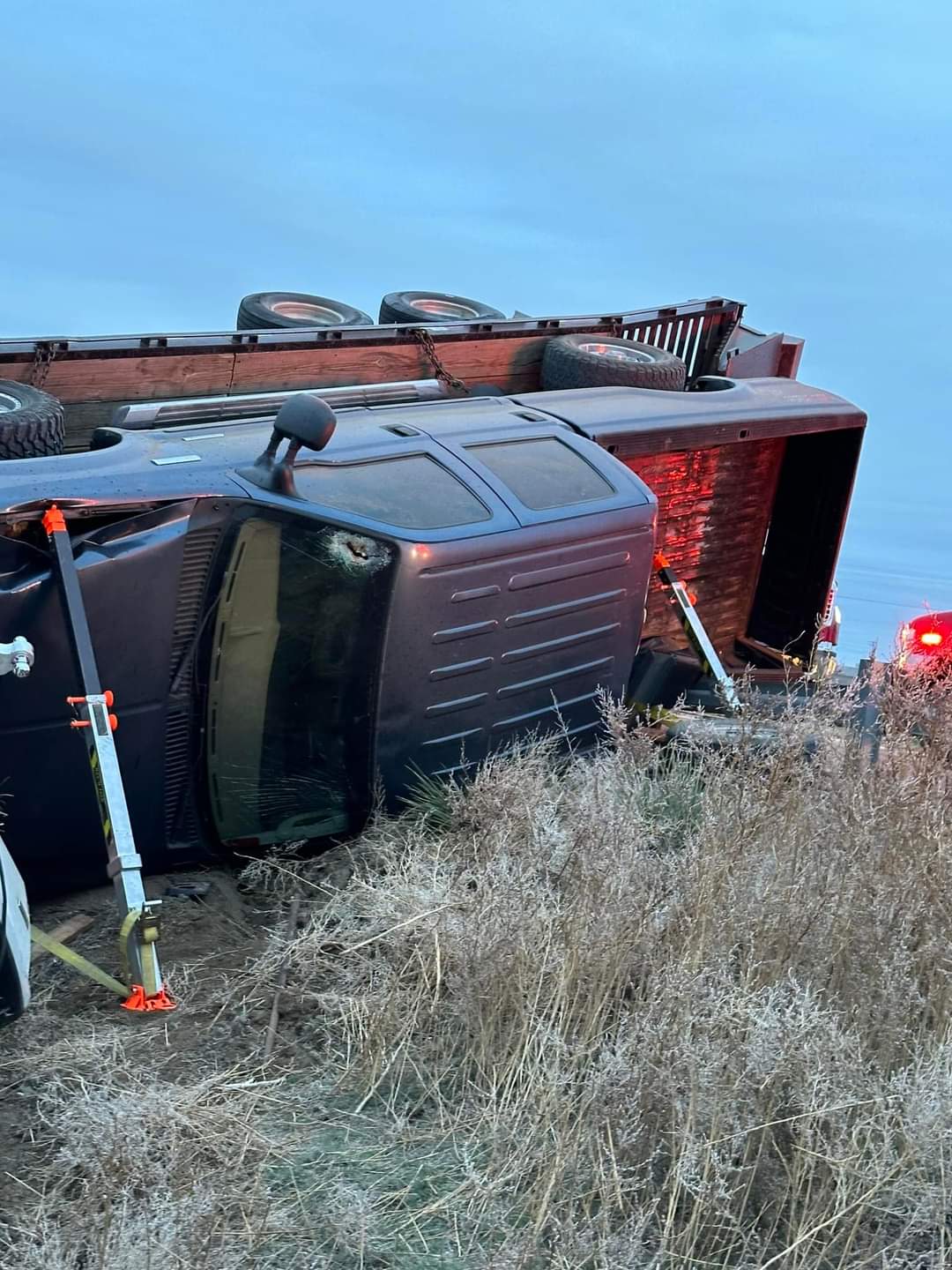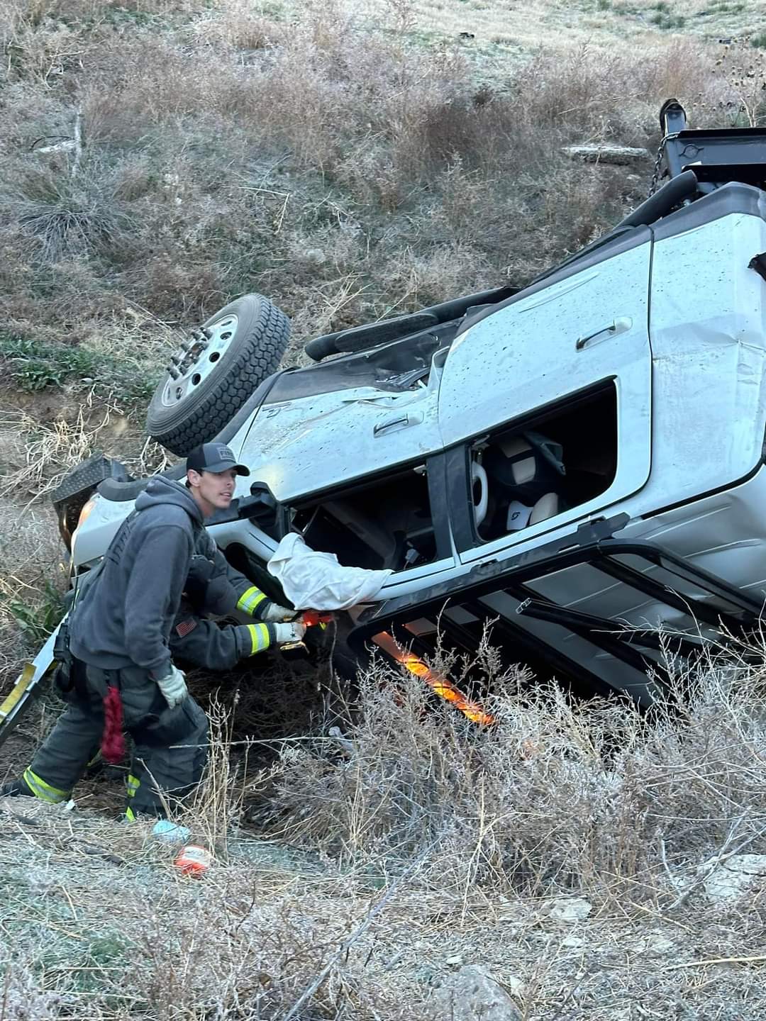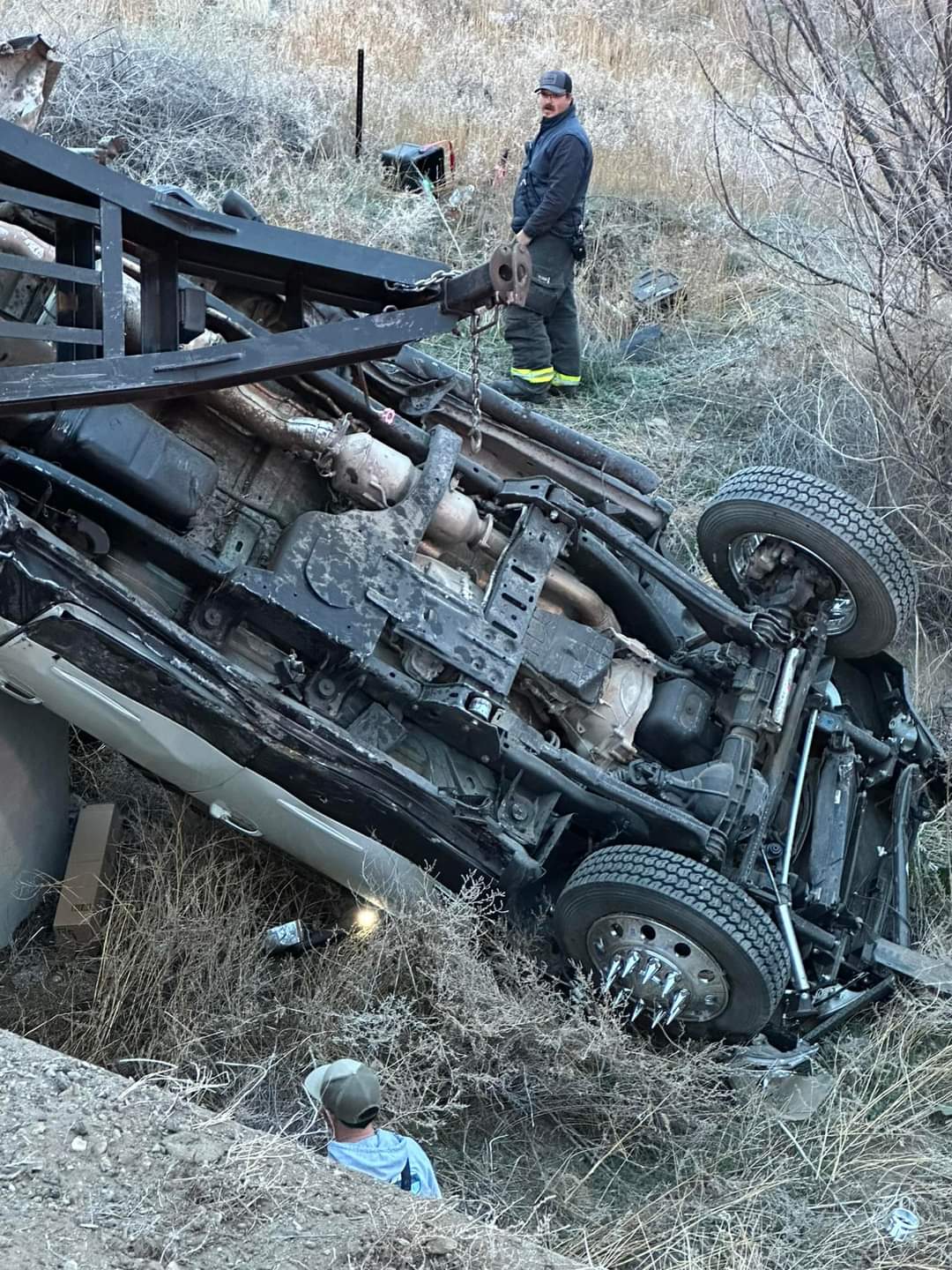 At approx 654pm this evening we responded to Hwy 50 and MM 381 on the East end of La Junta for a pickup and trailer that had wrecked and filled over into the ravine.