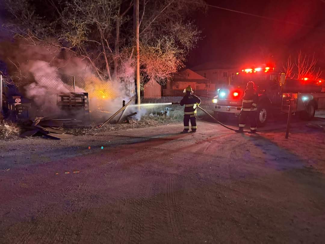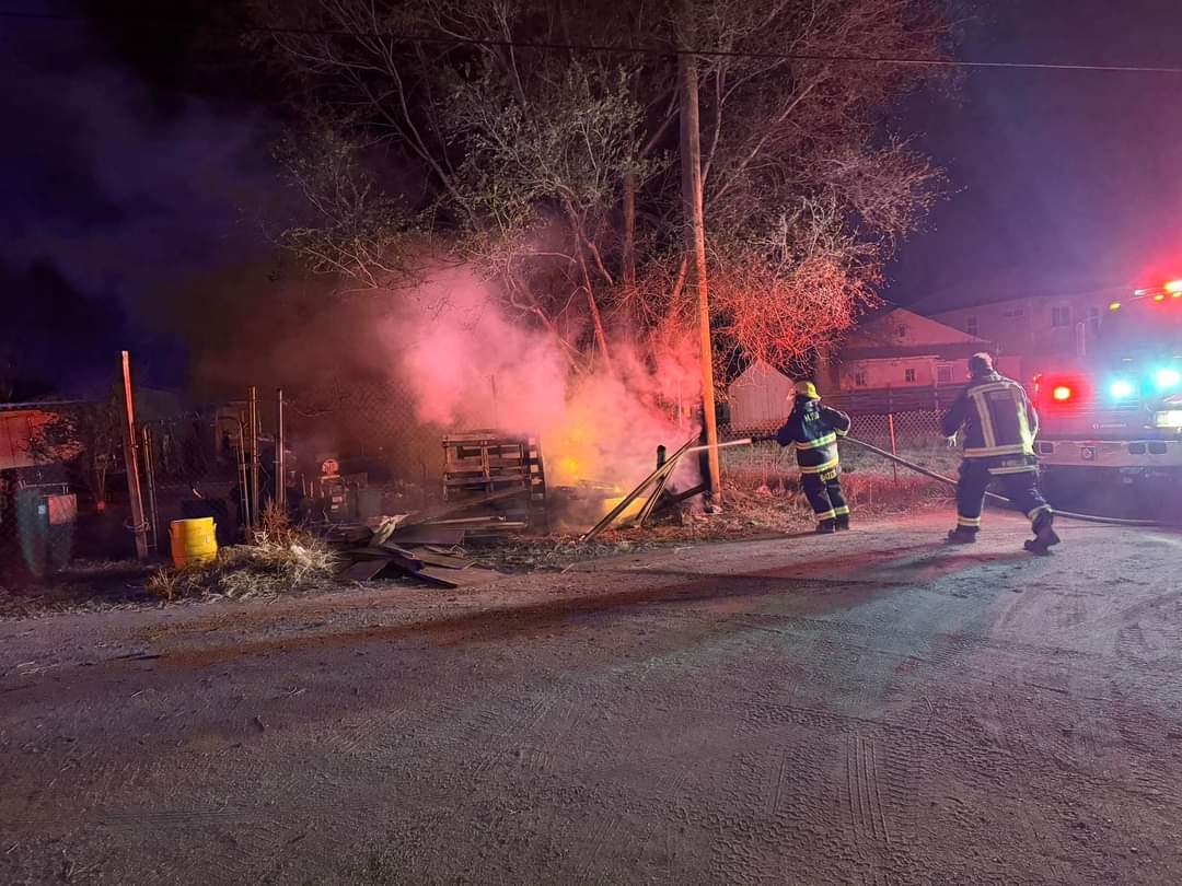 At approximately 8:30pm We were paged to another fire in the alleyway between 13th street and 12th street behind the St Peter's Catholic Church of Rocky Ford.