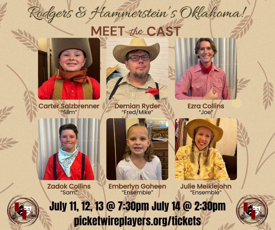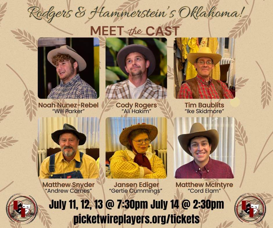 Description: Meet the Cast of Picketwire’s Oklahoma opening this week. Production dates July 11, 12, 13 at 7:30pm and July 14 at 2:30pm.
