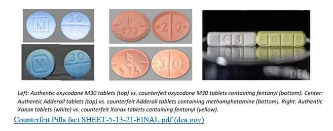 • If you suspect a pill might be counterfeit or laced with fentanyl, do not take it and report it to local authorities immediately.