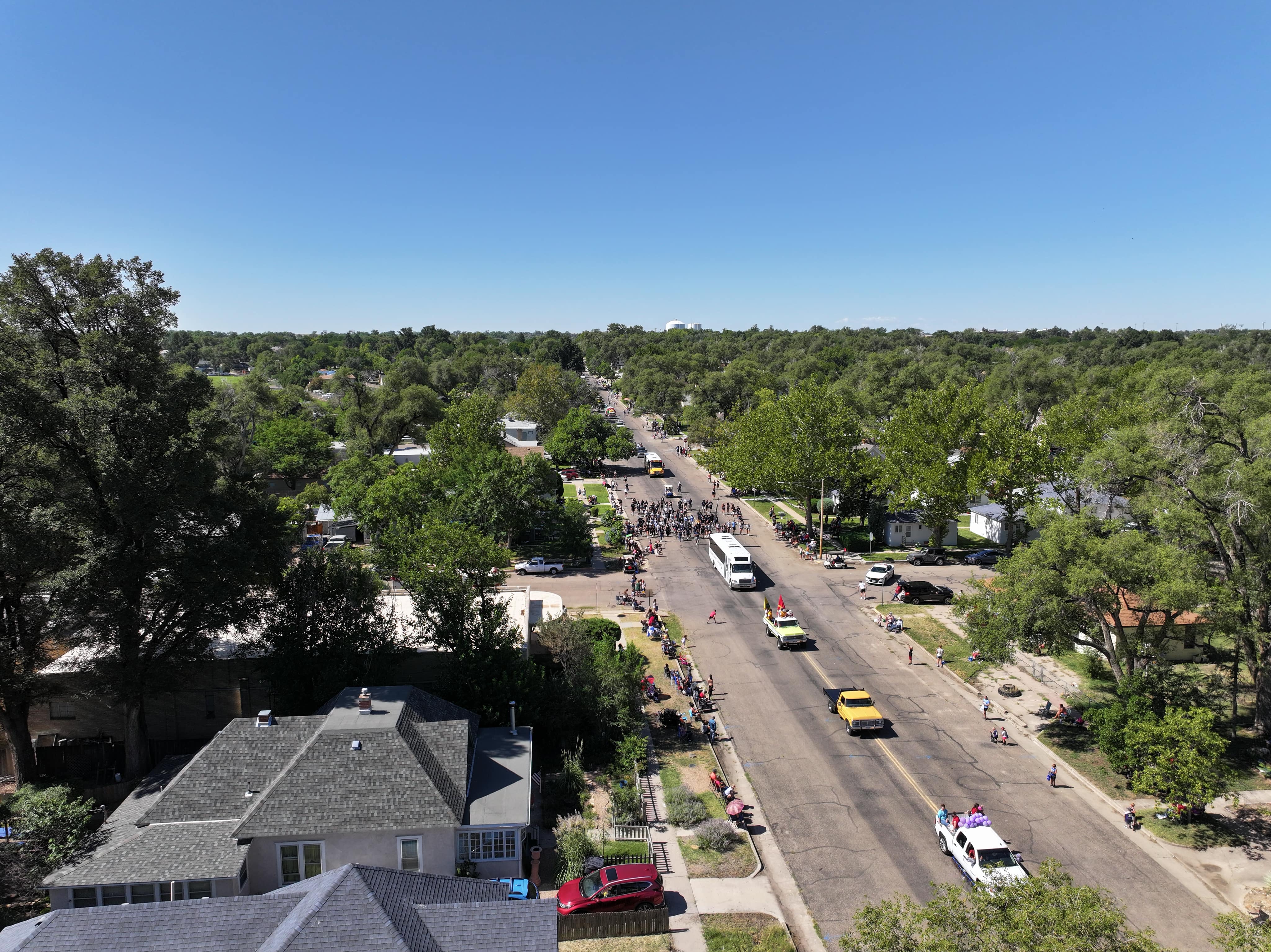 Aerial View of the 147th Arkansas Valley Fair Parade with Facitair