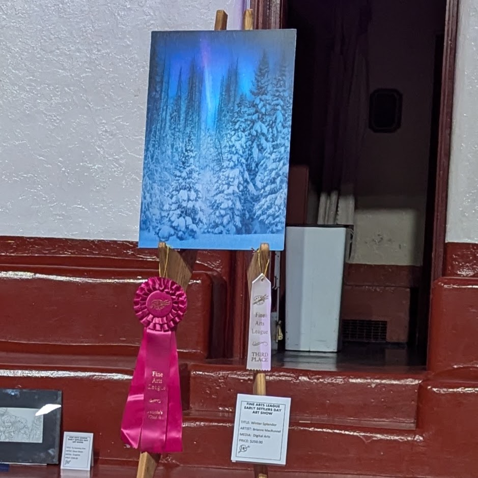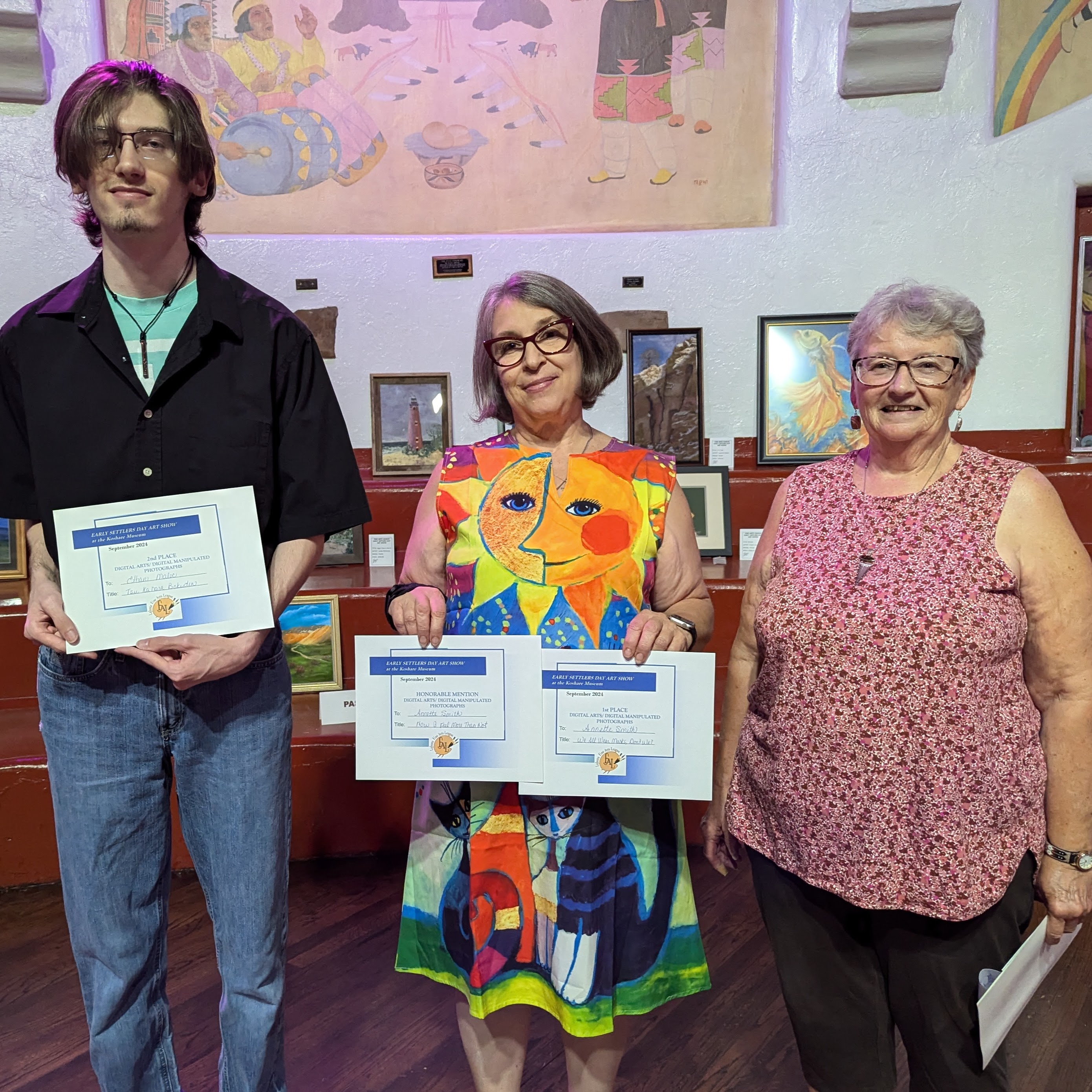 Top winners of the Fine Arts League’s Early Settlers Day Art Show were: Best of Show, Sherry Manyik, oil, “Prairie Palace;” Jurors Choice: Al Trujillo, photography, “Faithful at San Geronimo;” and Peoples Choice, Brianne MacRunnel, digital arts, “ Winter Splendor.”