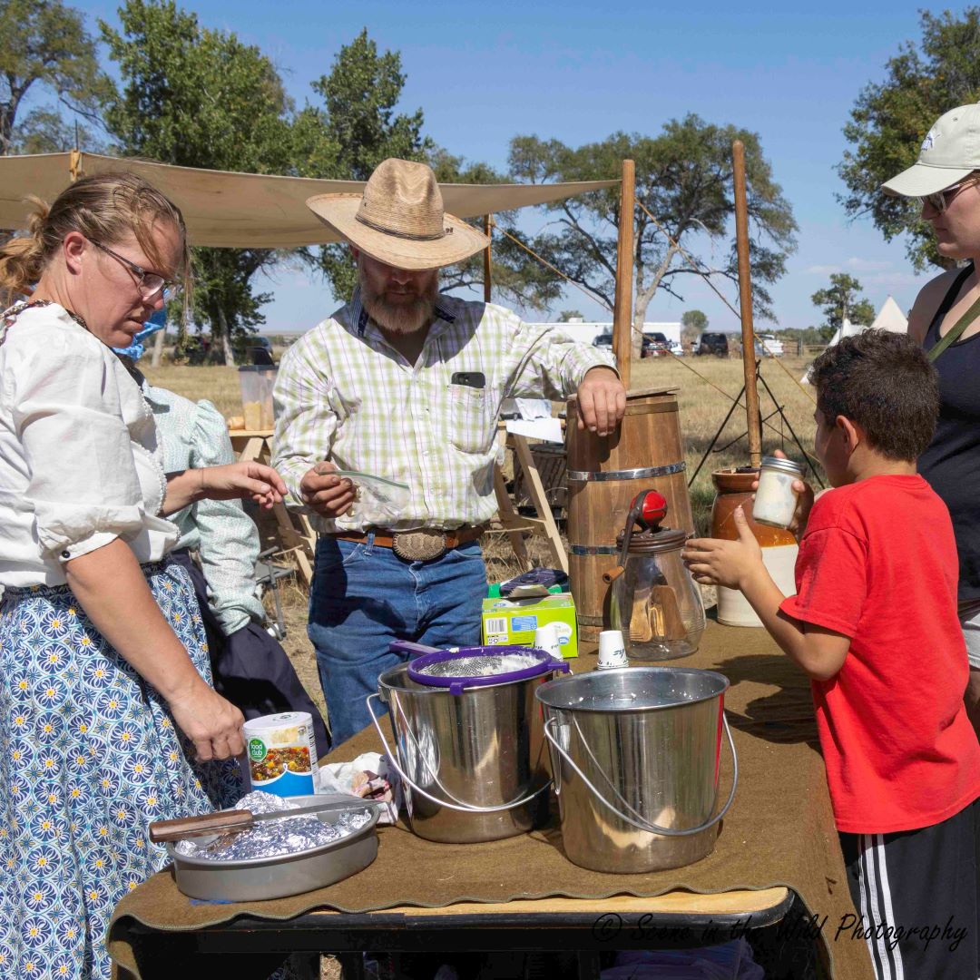 Games for children, a pulled-pork lunch, an adobe demonstration, wagon rides, a photo booth, entertainment, gun fights, a chuckwagon where people could churn butter, branding demonstrations, tours of the buildings, people in period clothing and merchandise booths were among the attractions of the day.