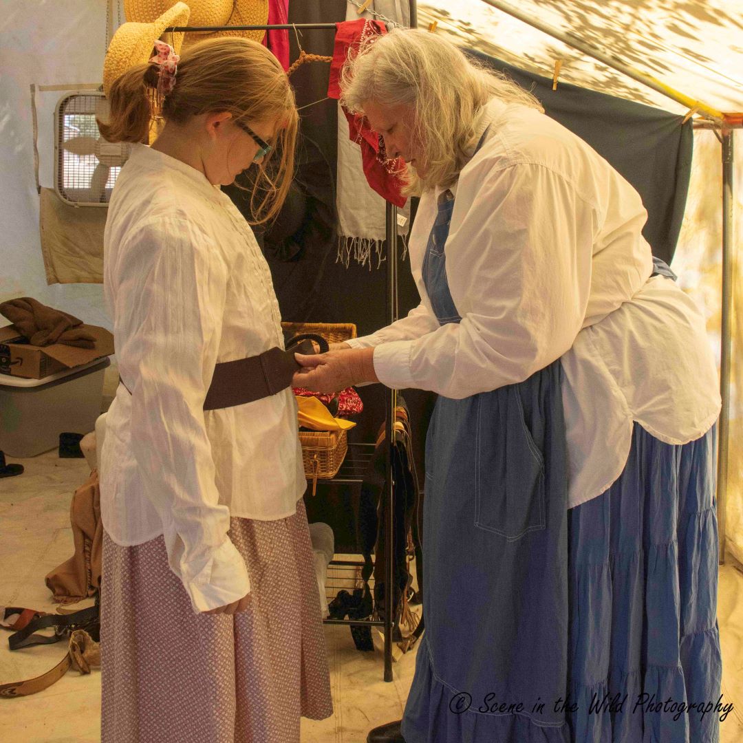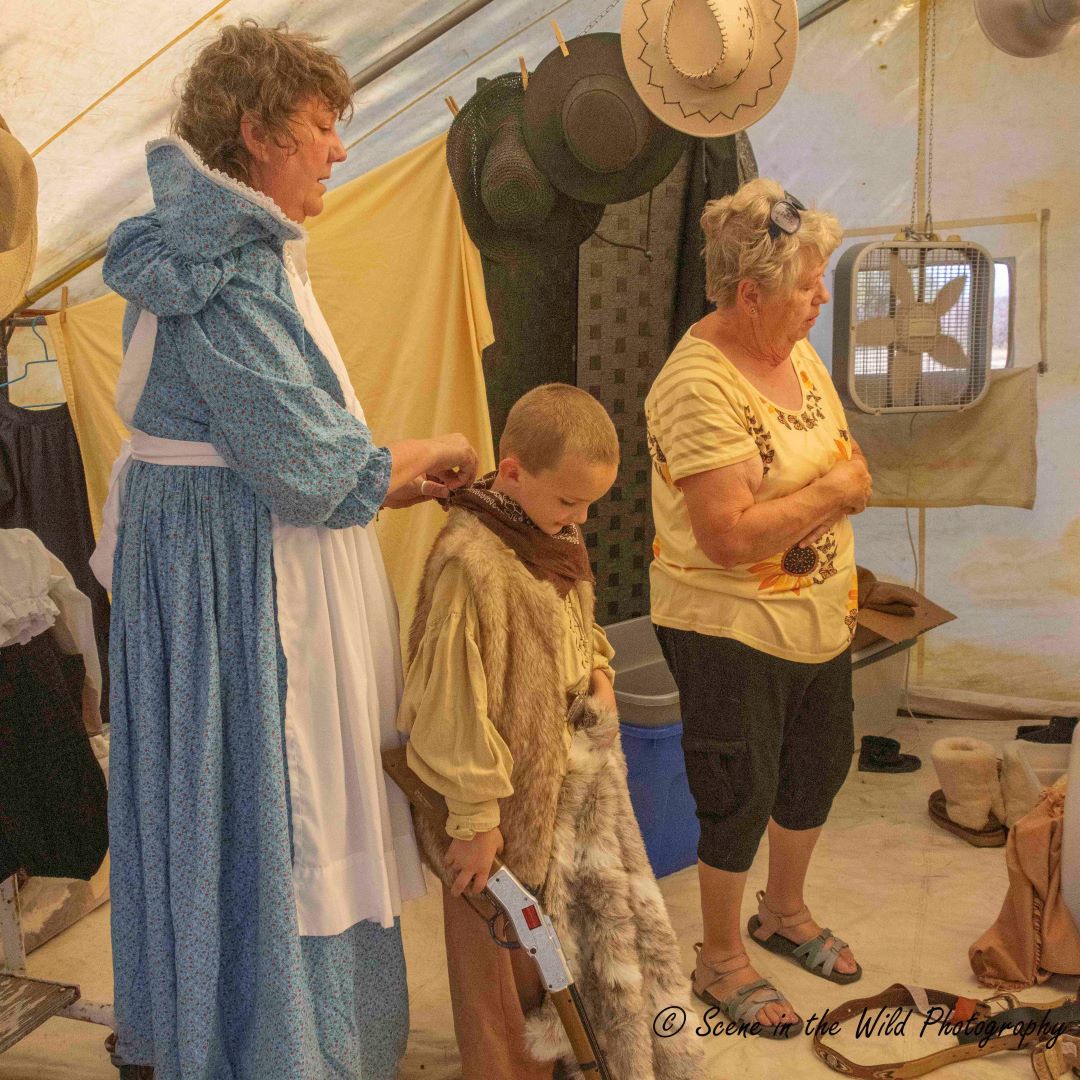 This young cowpoke gets the final touch of a bandana in the pioneer clothing booth before getting his photo taken.