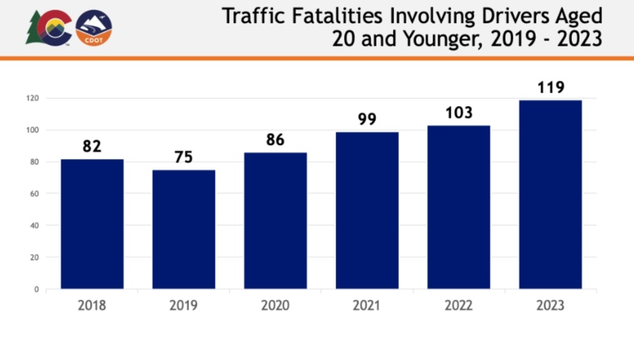 Statewide — More than 8,000 teen drivers have been involved in crashes in Colorado so far this year, according to CDOT crash data. That’s approximately 23 every day. Also concerning is the number of fatal crashes that involve teen drivers. Last year, 119 roadway fatalities involved drivers aged 20 or younger, which is an increase of 59% over the last five years.