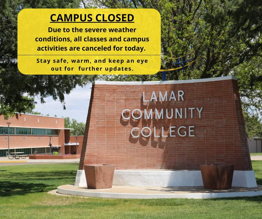 Due to inclement weather, the Lamar Community College Campus will be closed November 7th.