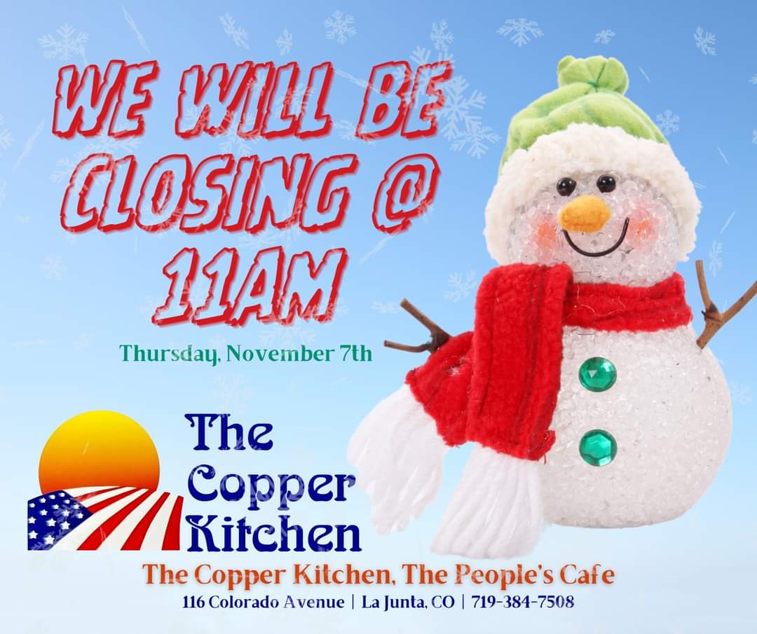 Due to winter weather, La Junta Public Schools will be closed today, Thursday November 7, 2024. We hope everyone stays warm and safe.