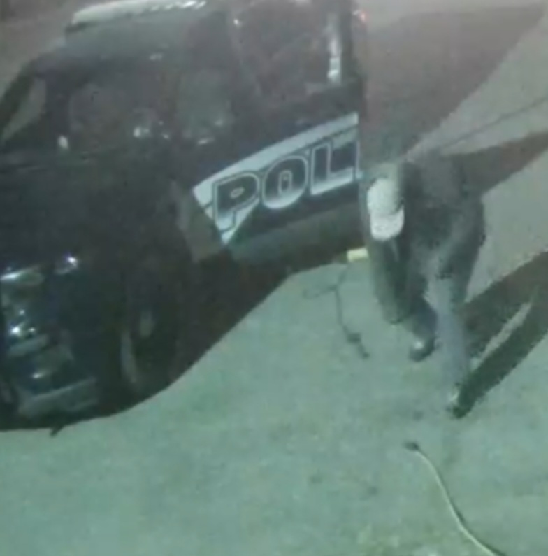 The burglary happened on November 21, 2024 at approximately 2:30am in front of the police department at 601 Main Street where the patrol car was parked.