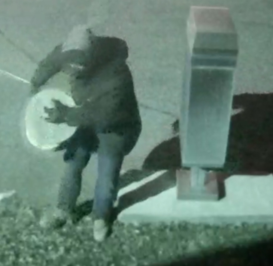 The suspects arrived on foot and were last seen walking eastbound from the police department.