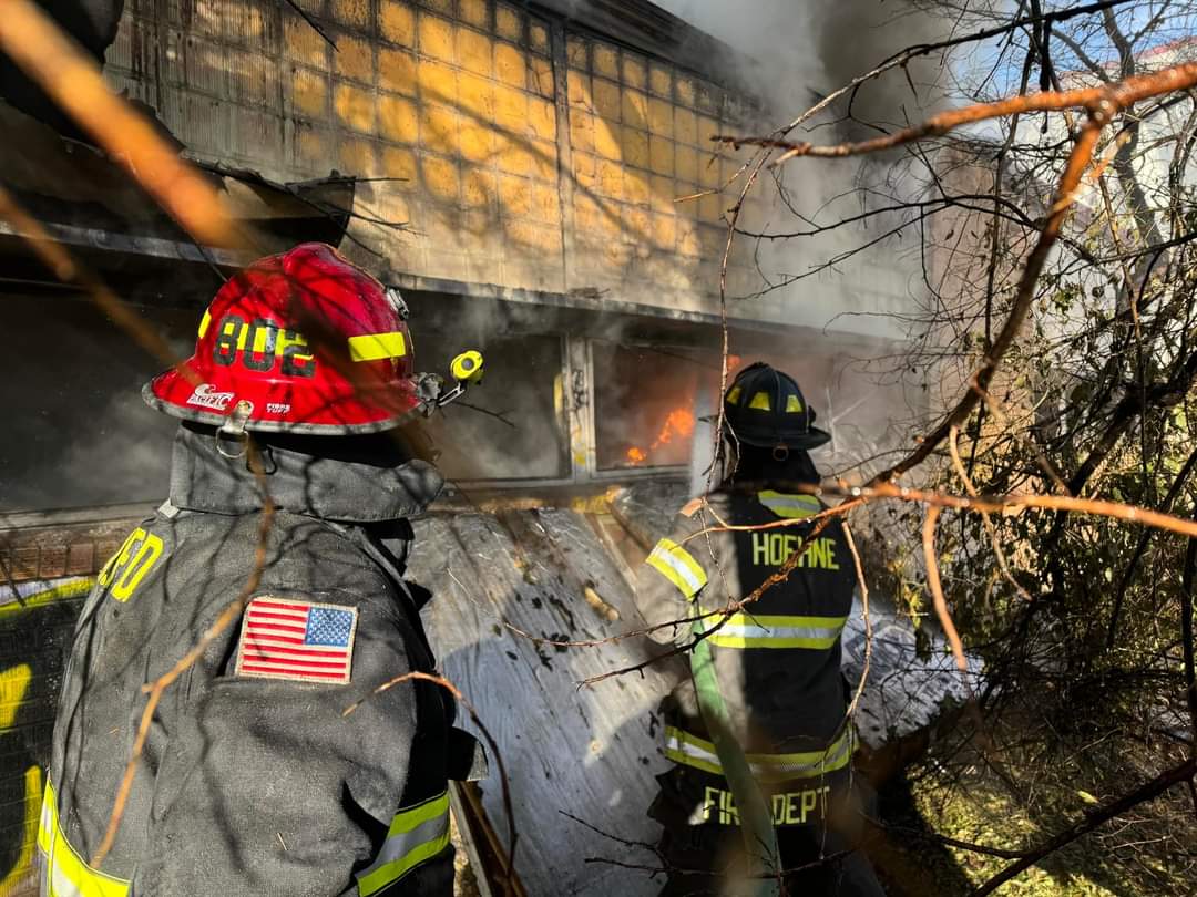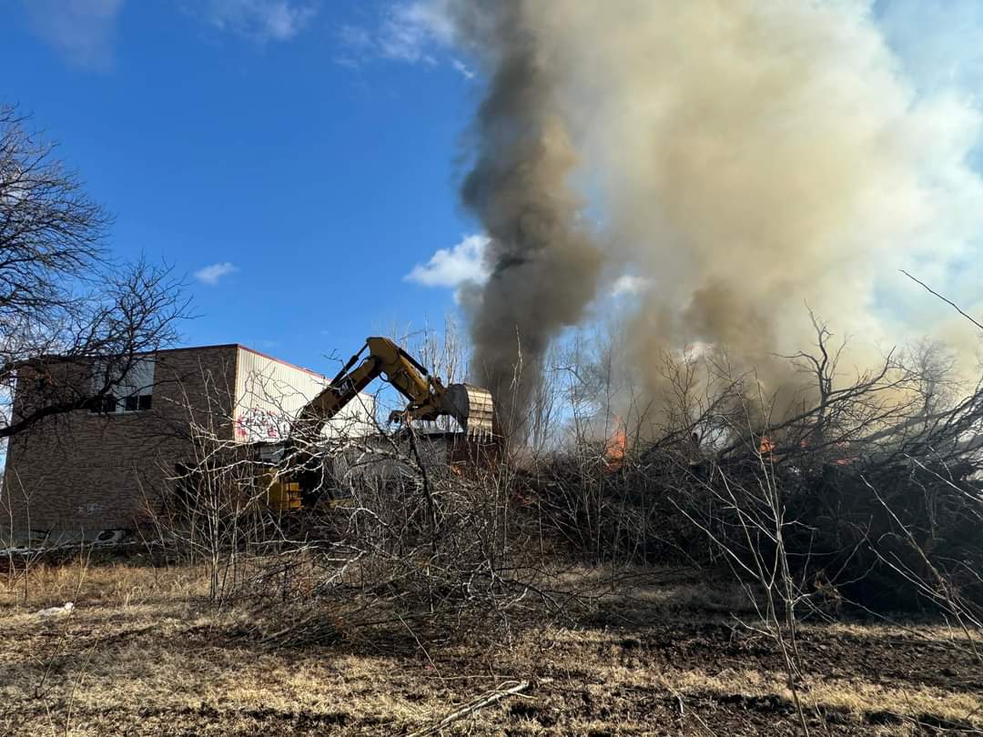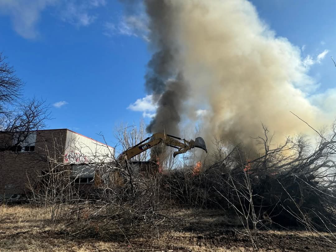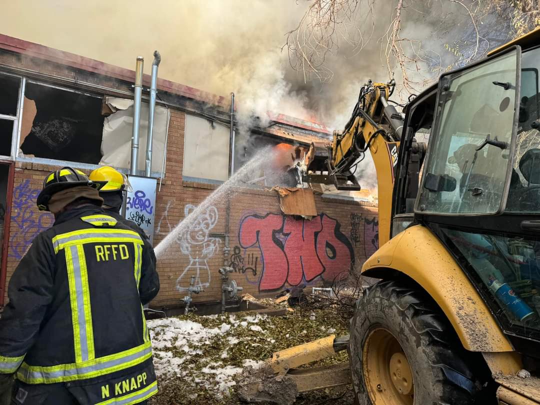 Fire proved to be difficult to extinguish so heavy equipment was requested by HC Construction and J.M. Tucker Excavating. Heavy equipment helped remove trees and walls allowing firefighters a better chance to extinguish the fire. Crews worked strenuously throughout the day finally containing the fire at approximately noon.