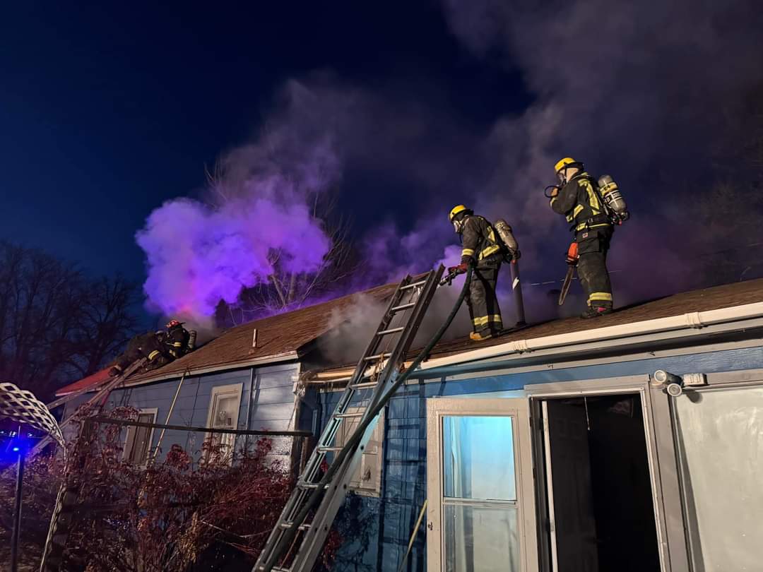 This evening at approximately 4:34 pm we were paged for a structure fire at 410 South Third Street. Upon arrival all persons self-evacuated and we found roof line and eaves with moderate to heavy smoke showing.
